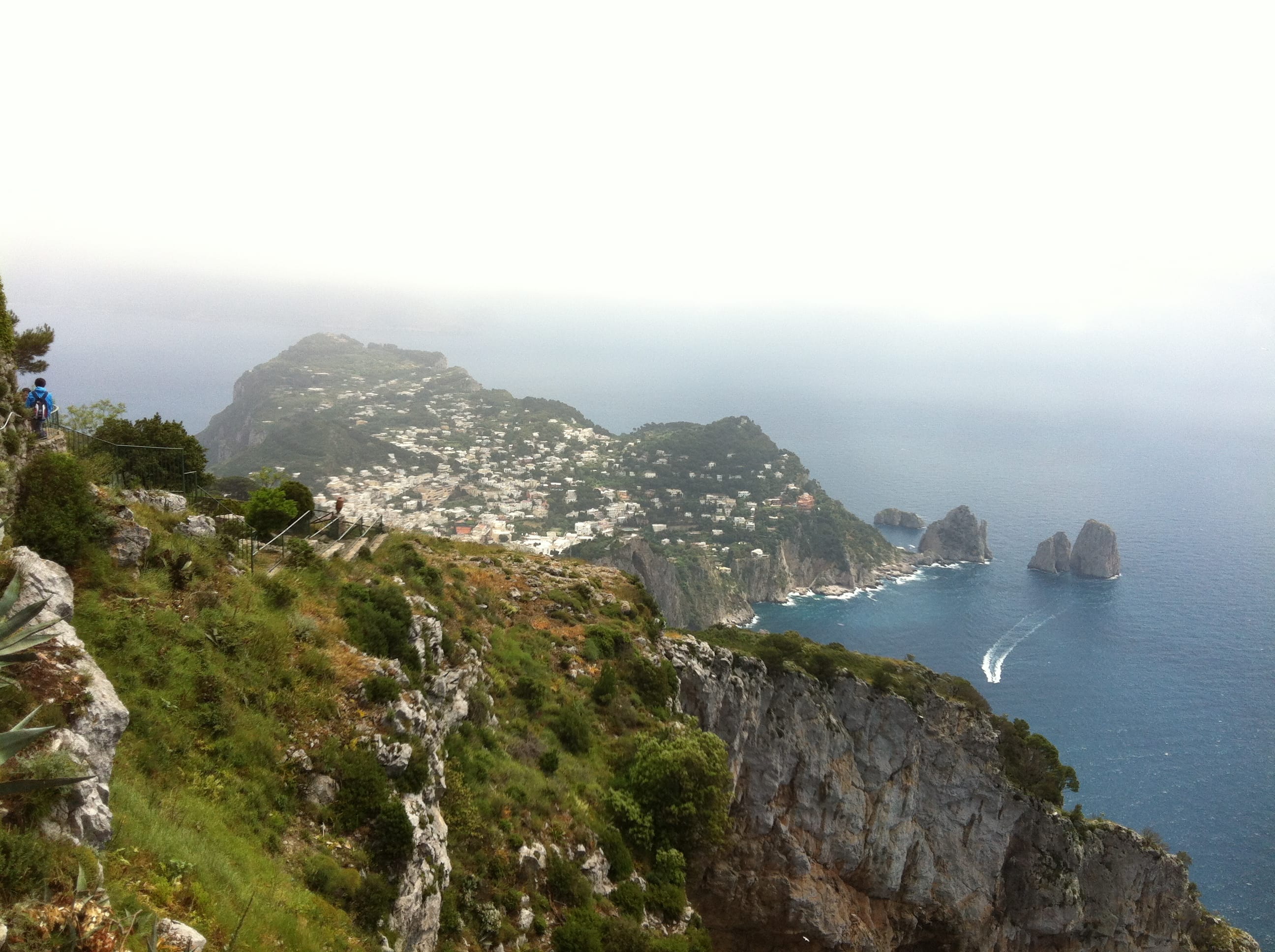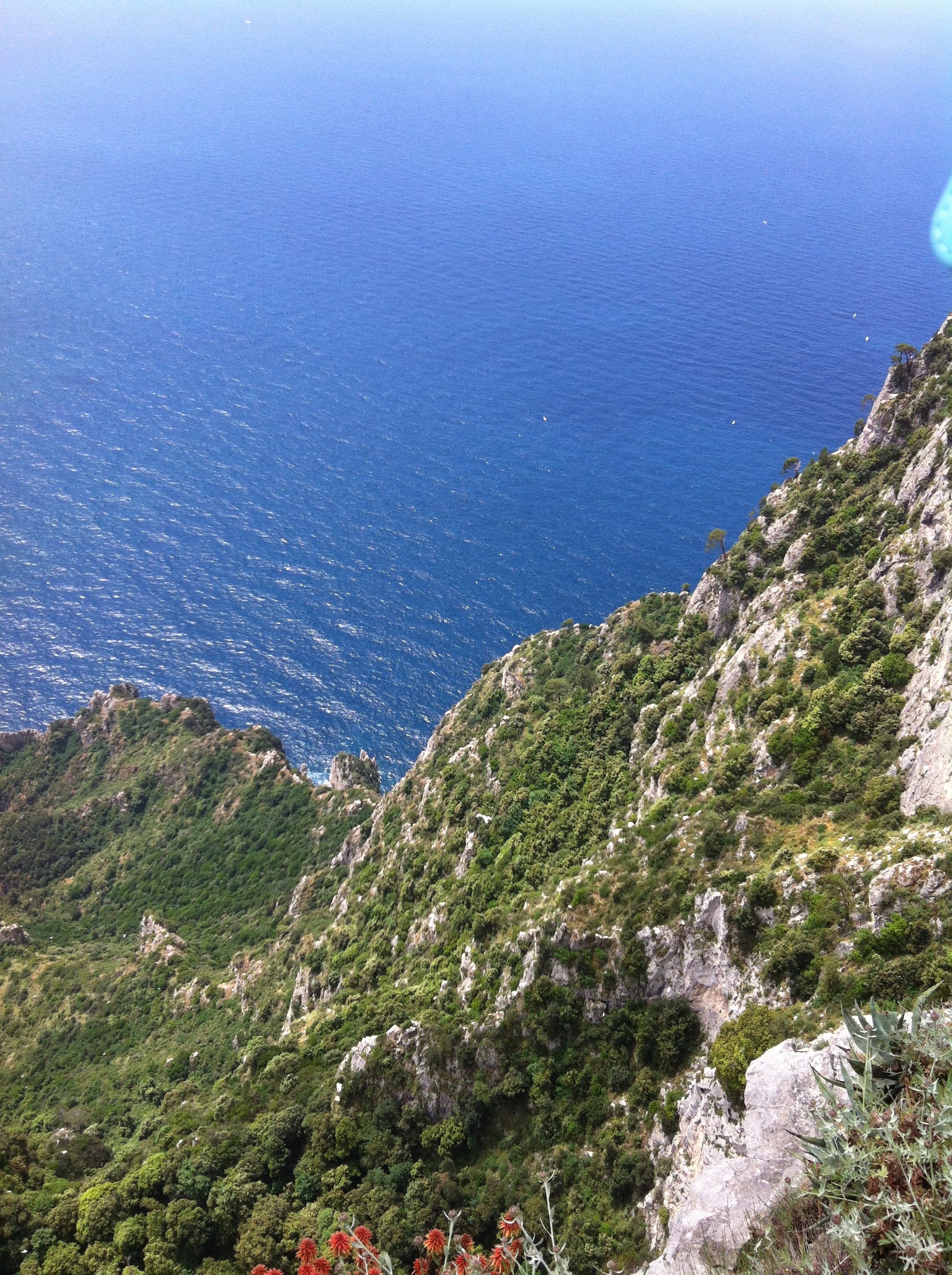 Very good pictures of the top of Capri. Our study abroad group took a chairlift to the top of the island. The chairlift seats one person and is strung by a wire all the way to the top, maybe a 10-15 minute ride. The ride was peaceful, we floated on top of houses, gardens, trees – it was a dream coming to life.