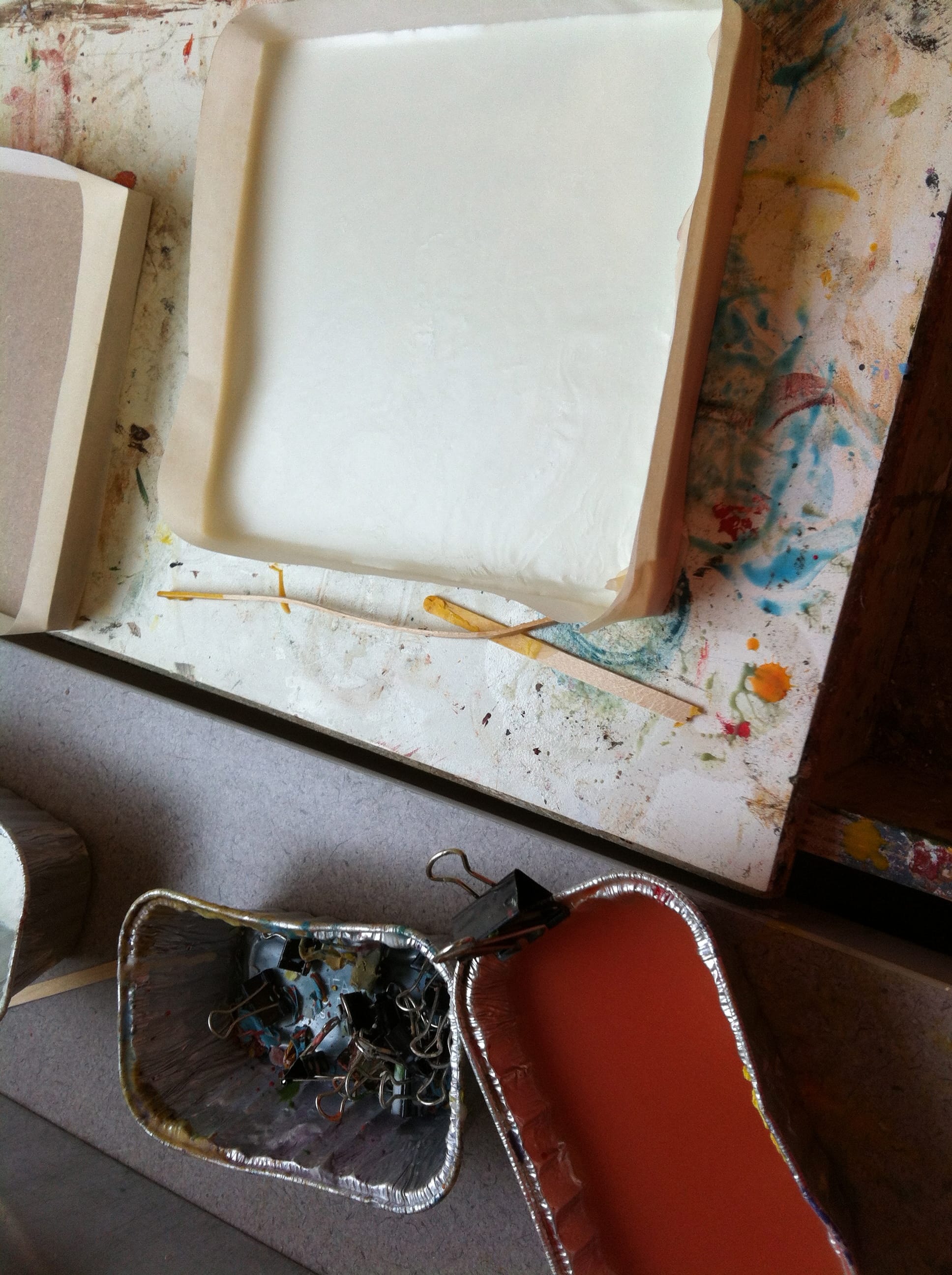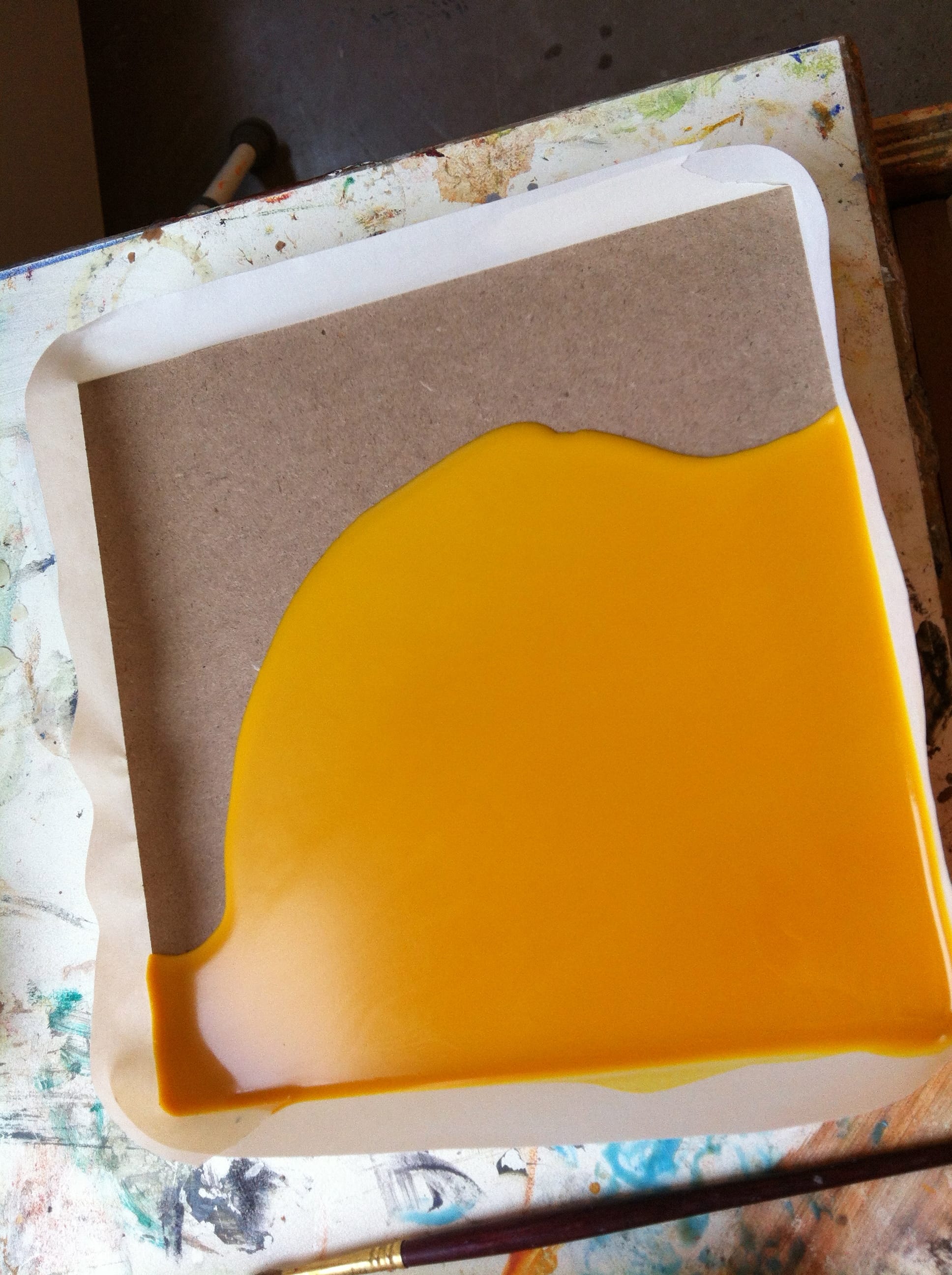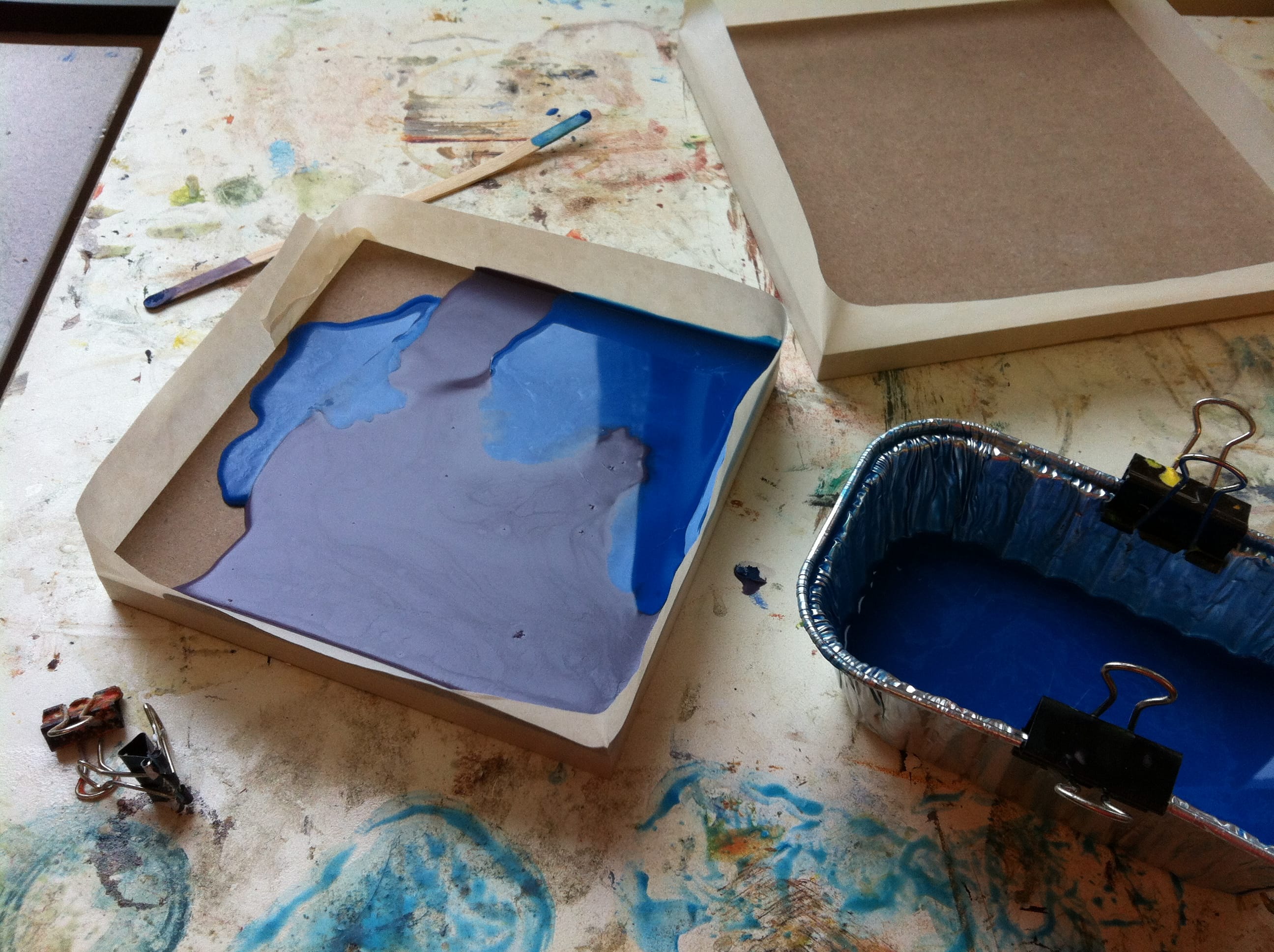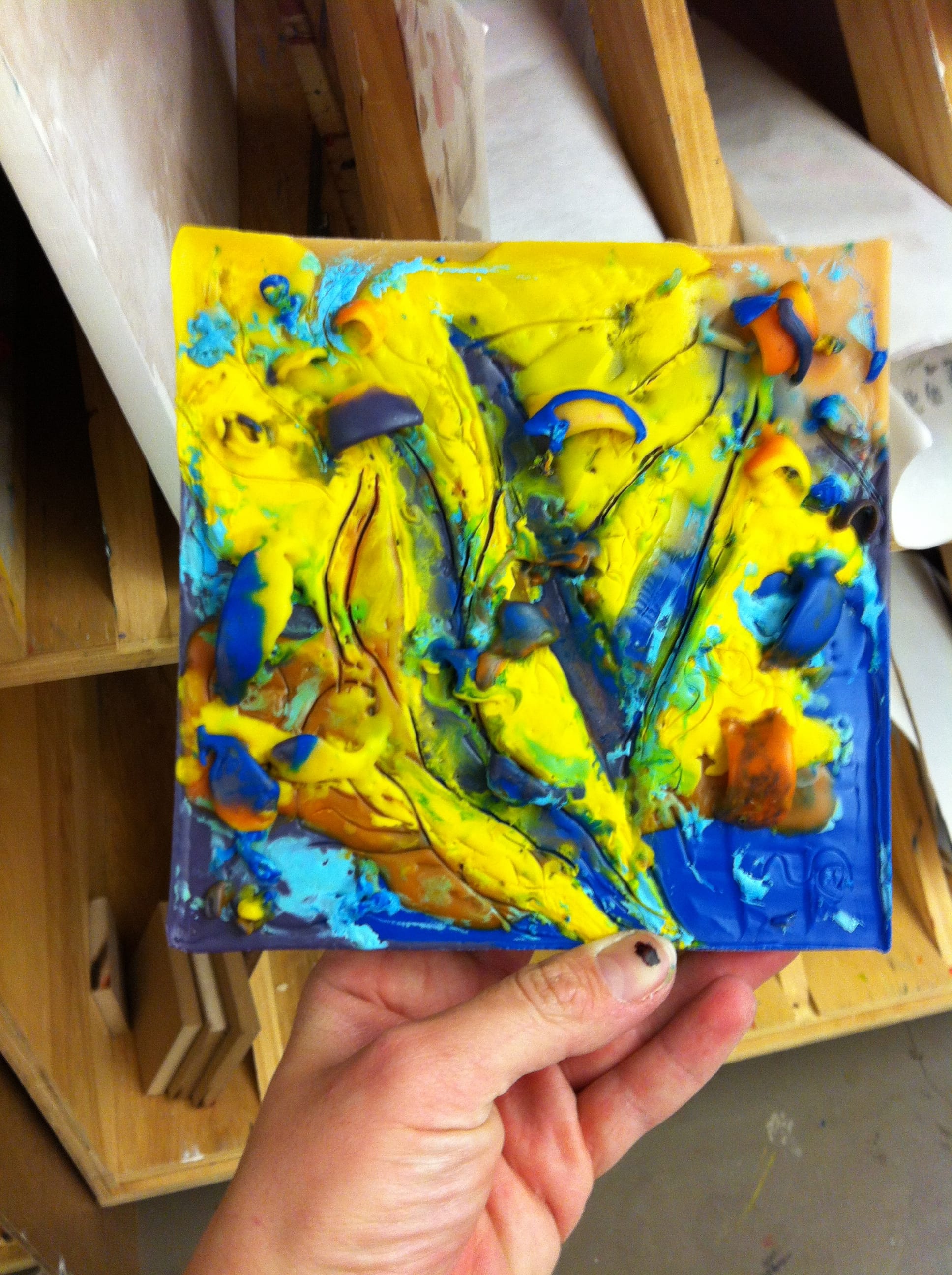 Add additional layers of the wax paint. Use a heat gun to melt the layers together, this creates a unique texture molding the layers.