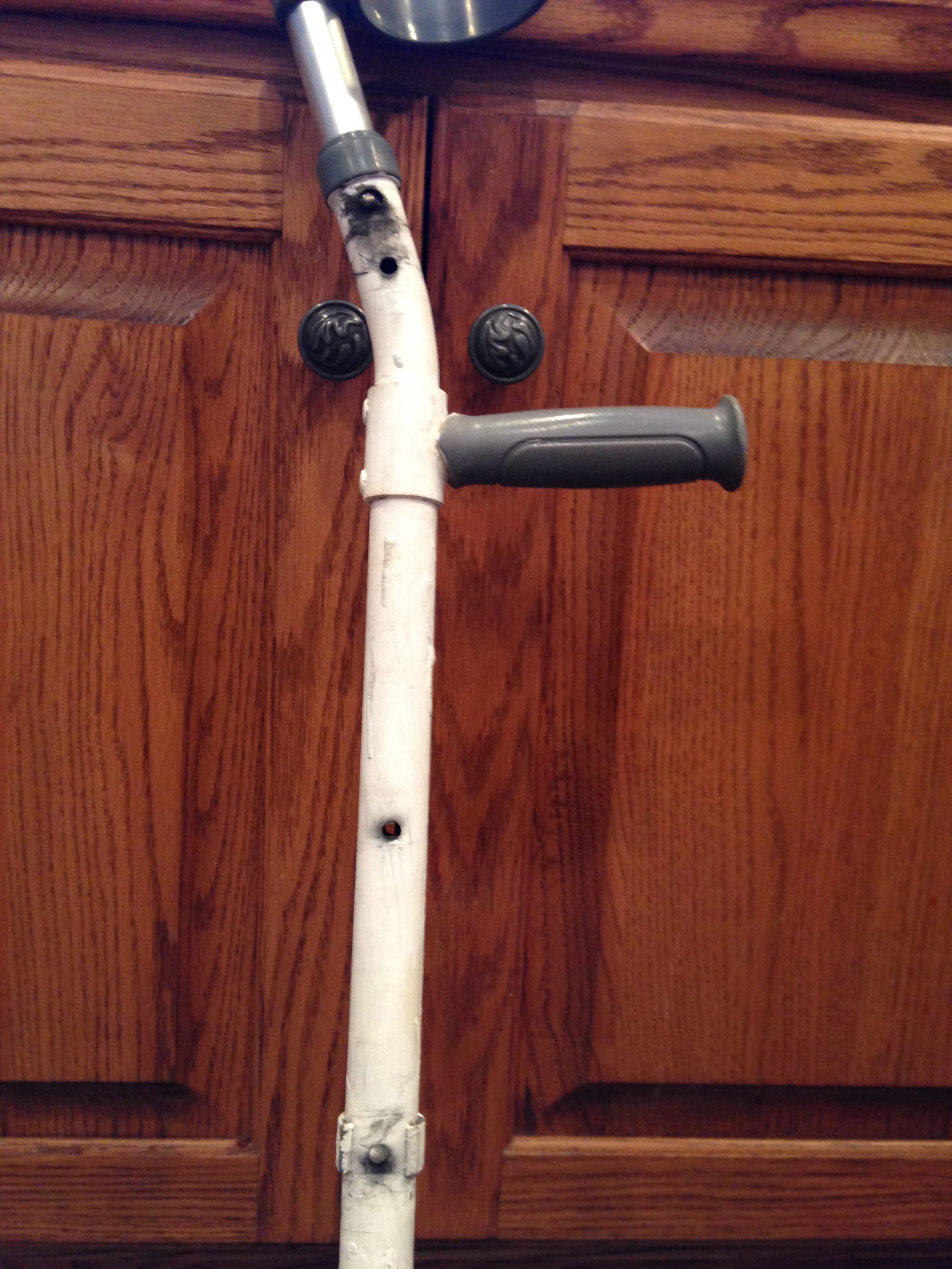 I wrap ribbon around my crutches to avoid this embarrassment to myself. I cannot afford to buy new crutches.