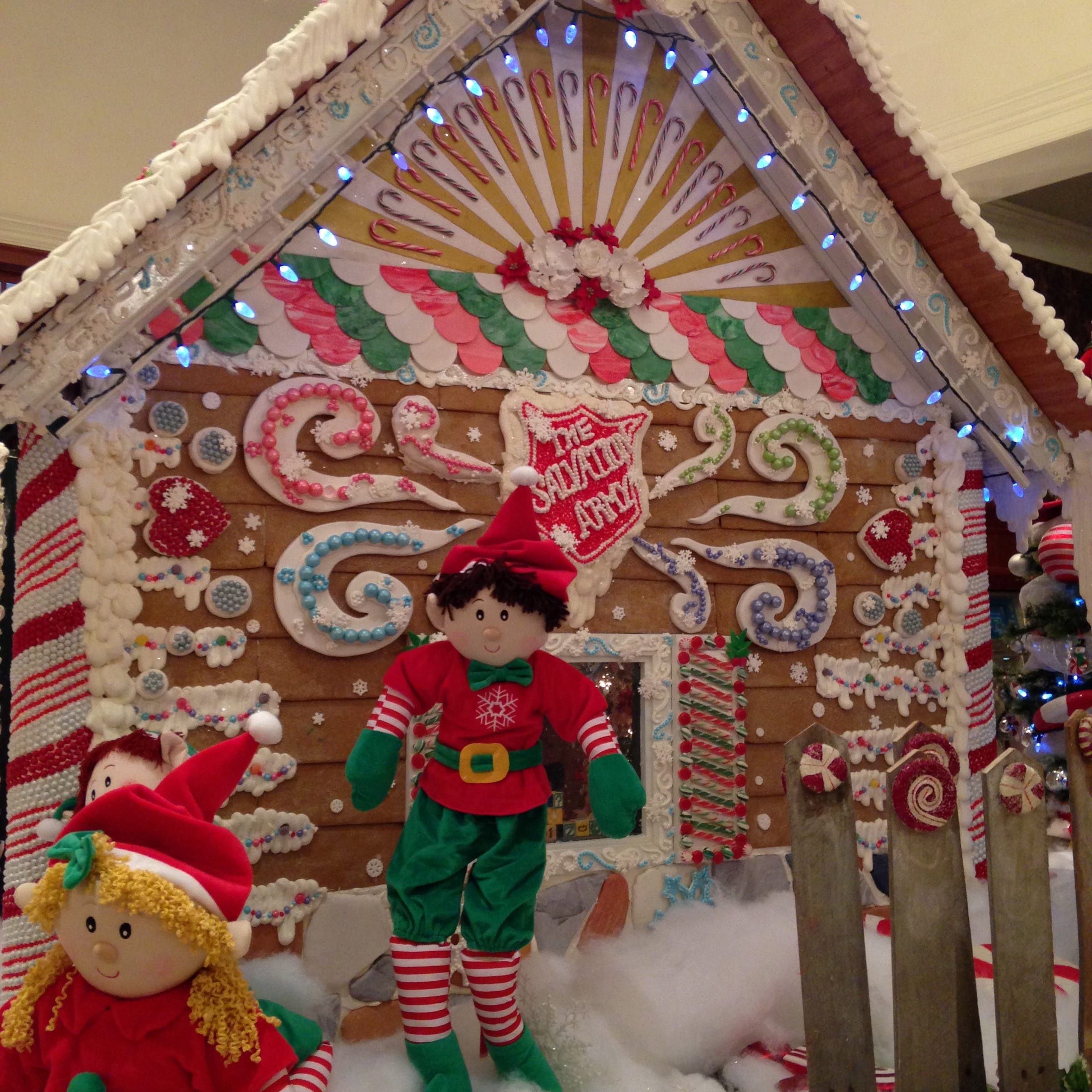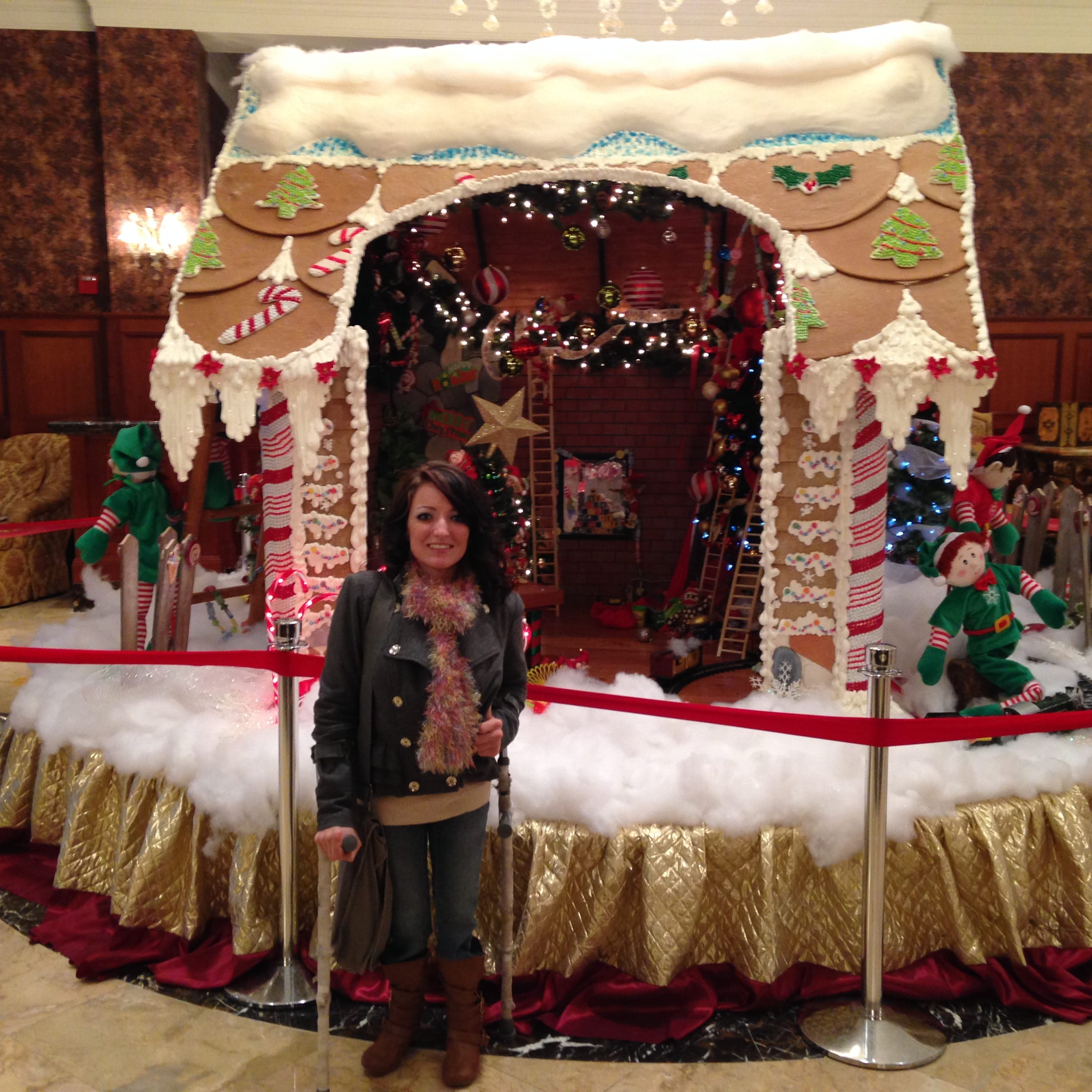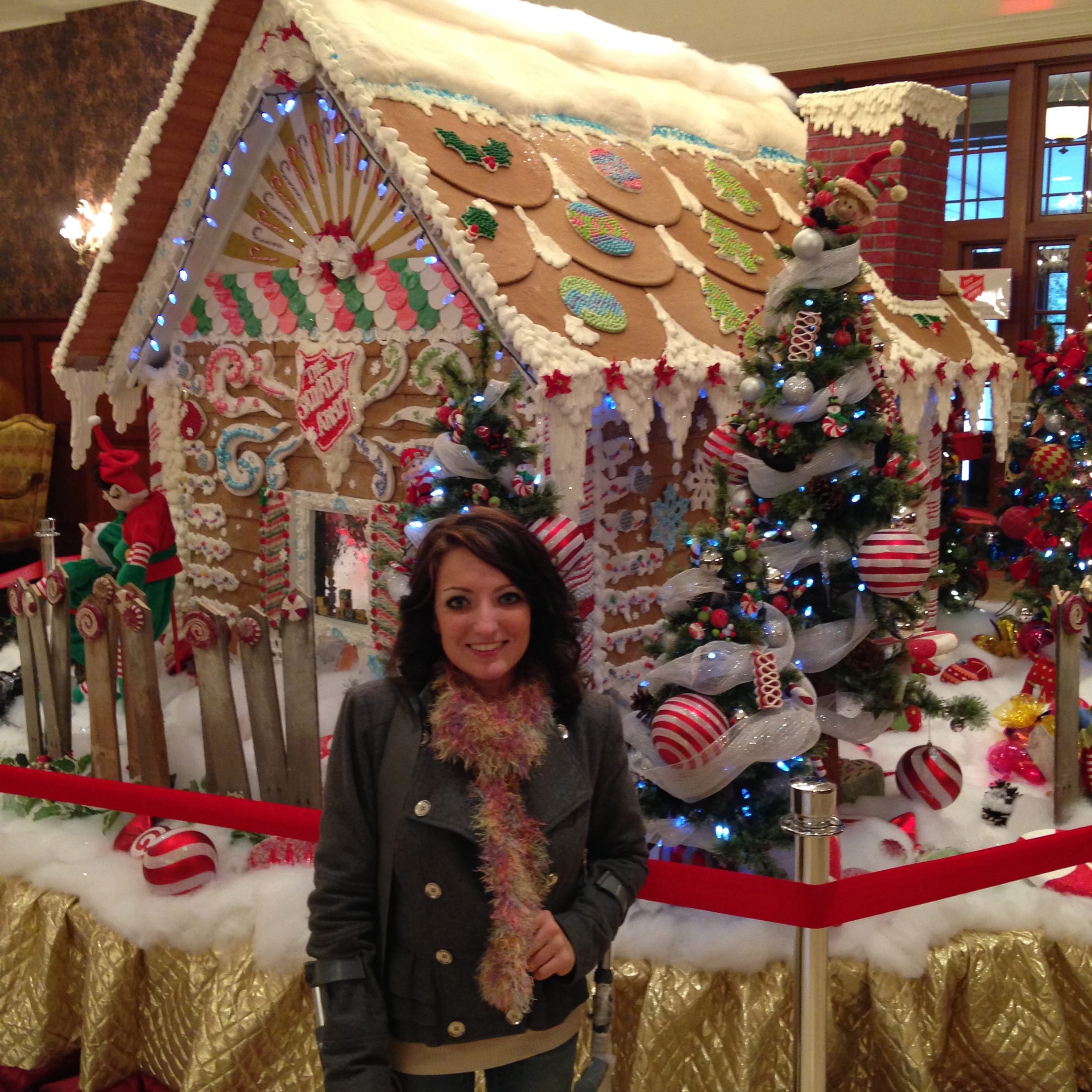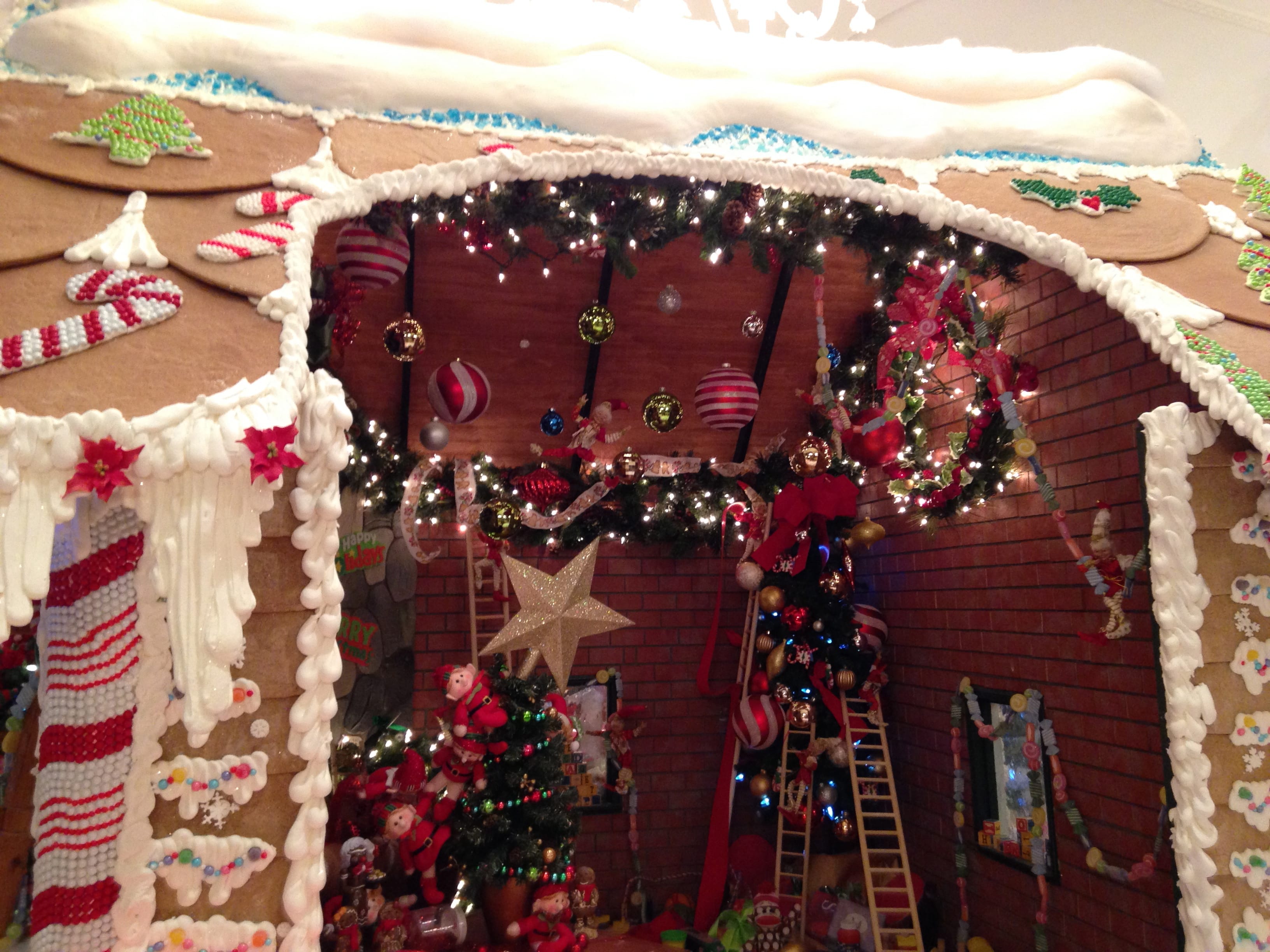 This is my second year visiting the life-sized gingerbread house display at the Royal Park Hotel in Rochester, Michigan. This giant gingerbread house stands about eight feet tall covered in goodies that took over 580 hours of “Tender Loving Care” to create. The details are incredible from candycanes to glitter snowflakes and elves hiding around the display. People flocked to the lobby of the Royal Park Hotel to see this masterpiece.