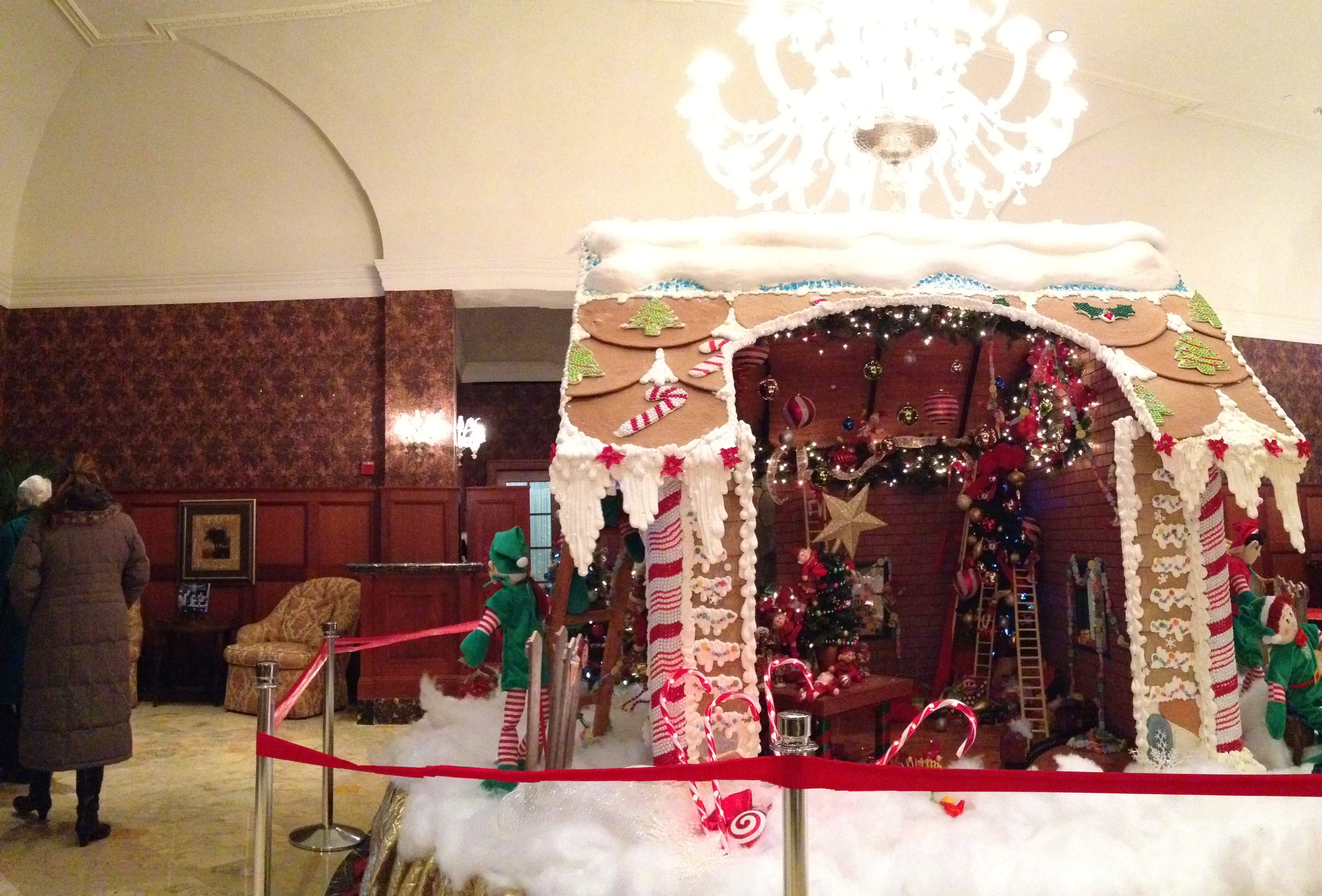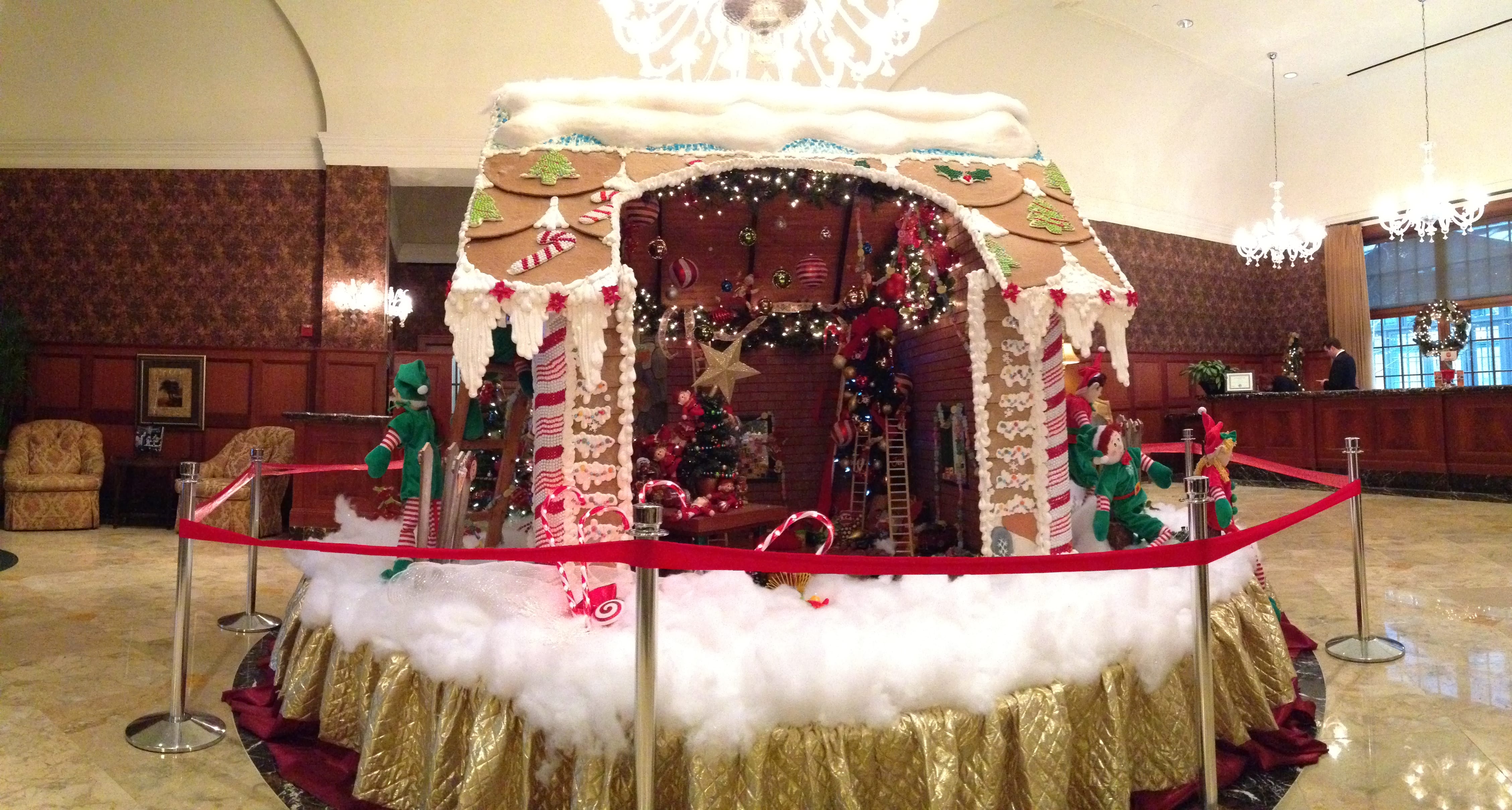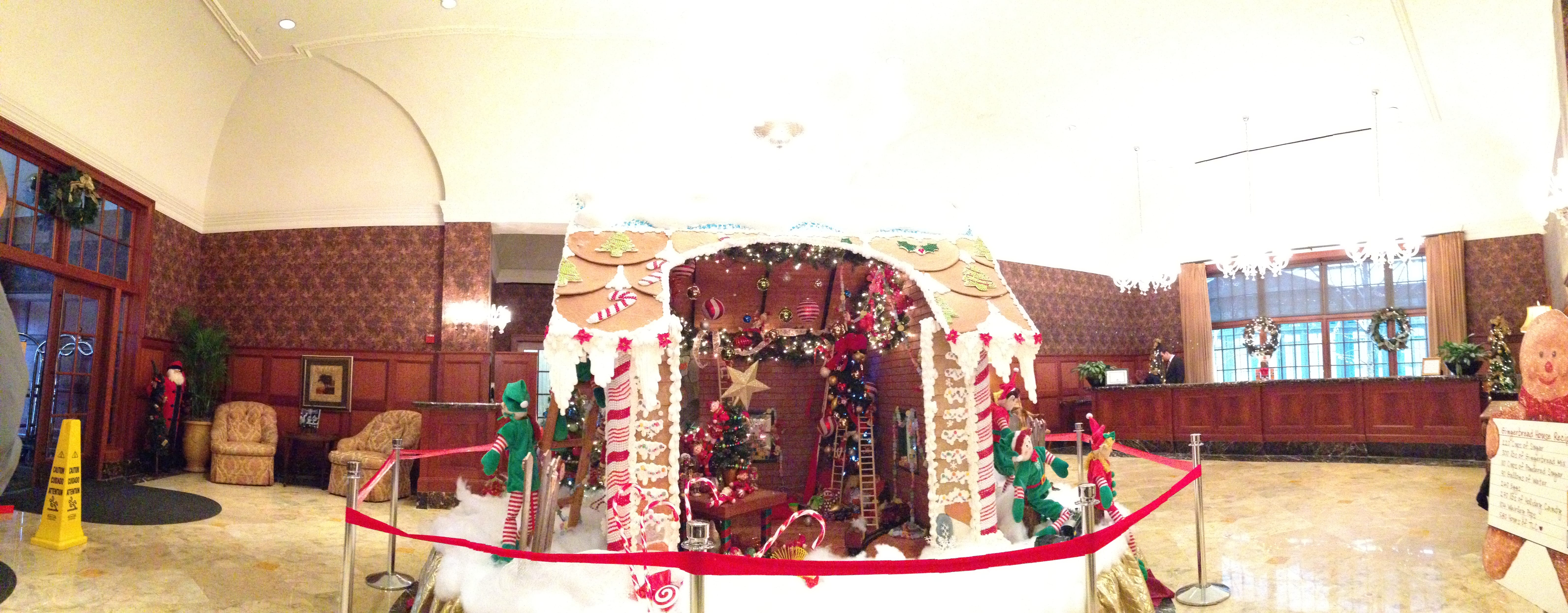 The Royal Park Hotel in Rochester, Michigan hosted an eight-foot tall giant gingerbread house made of delicious treats. The homemade treat is in the lobby of this beautiful hotel.