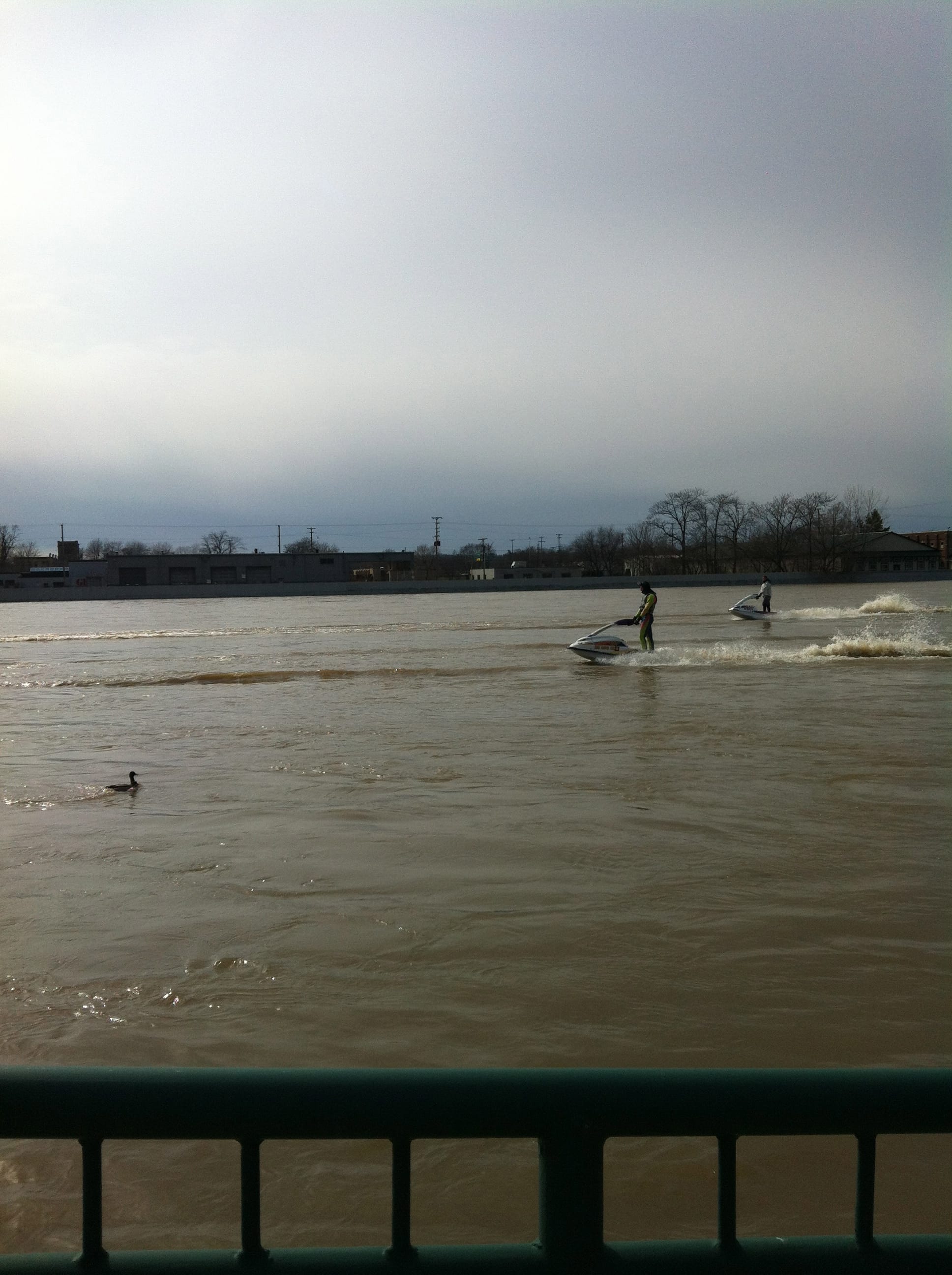 Grand Rapids Flooding Jet Skis on Grand River in Grand Rapids, MICH.