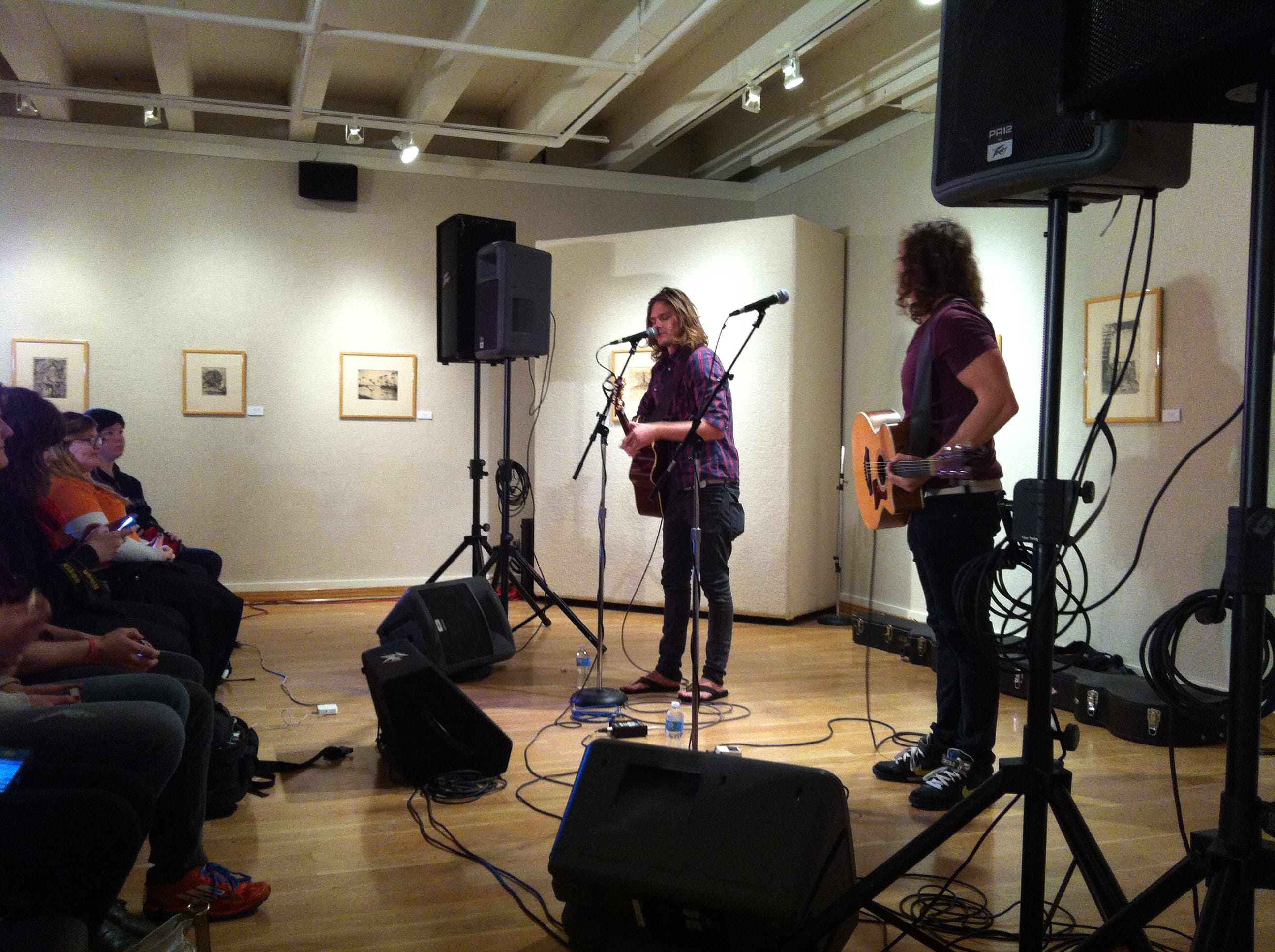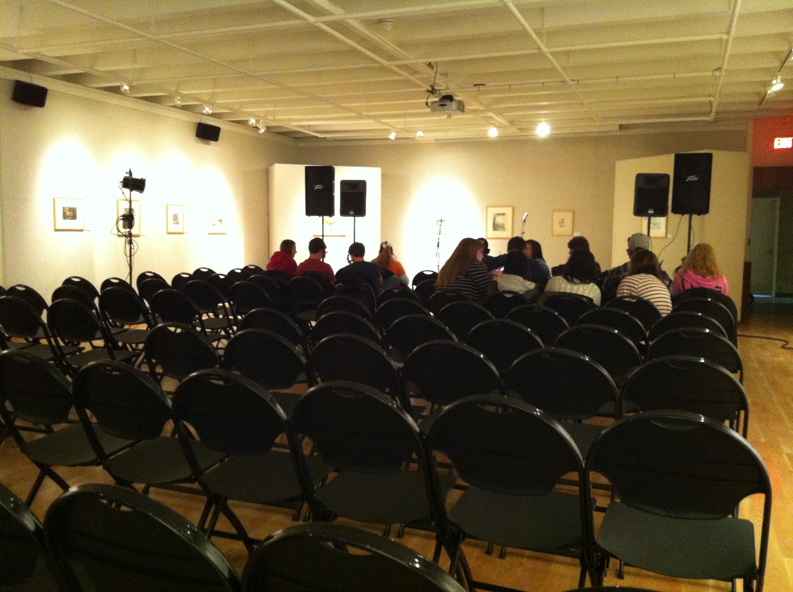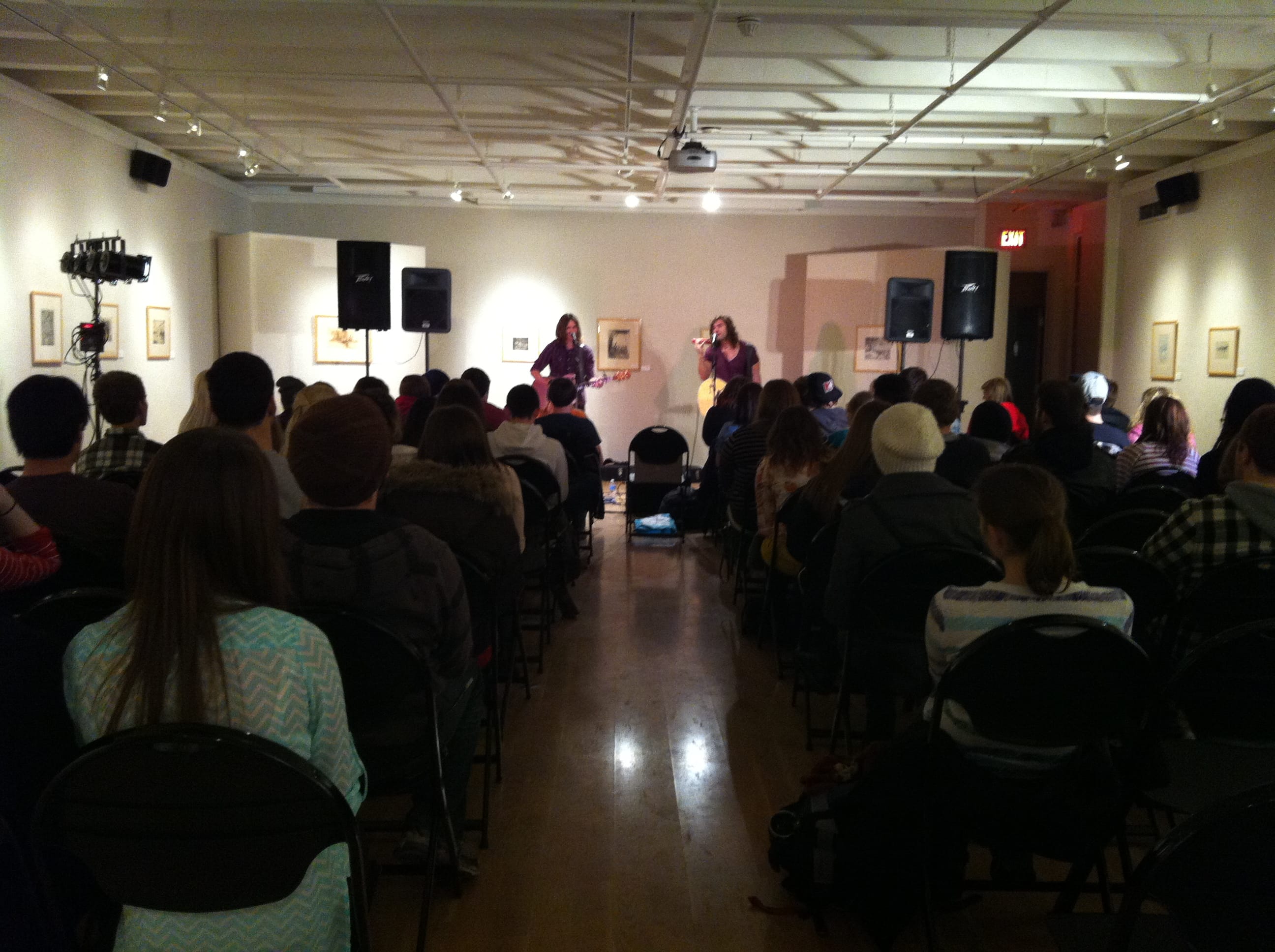 Students pile into the Rankin Art Gallery for a good seat before the performance.