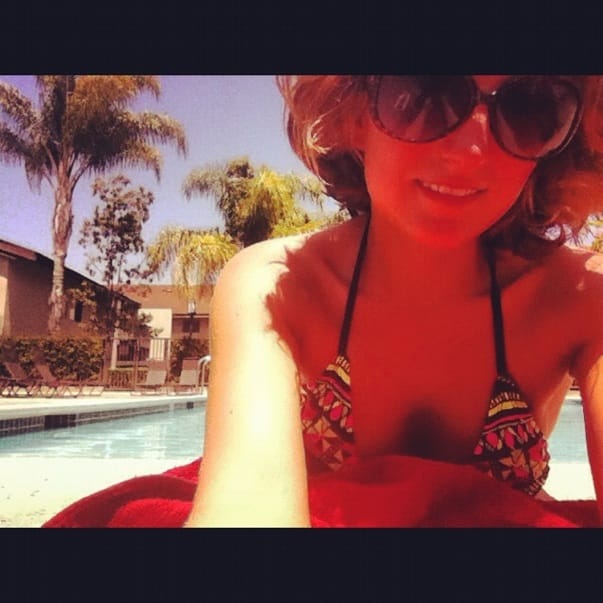 Half my body is in the pool & the other half is roasting in the weather.