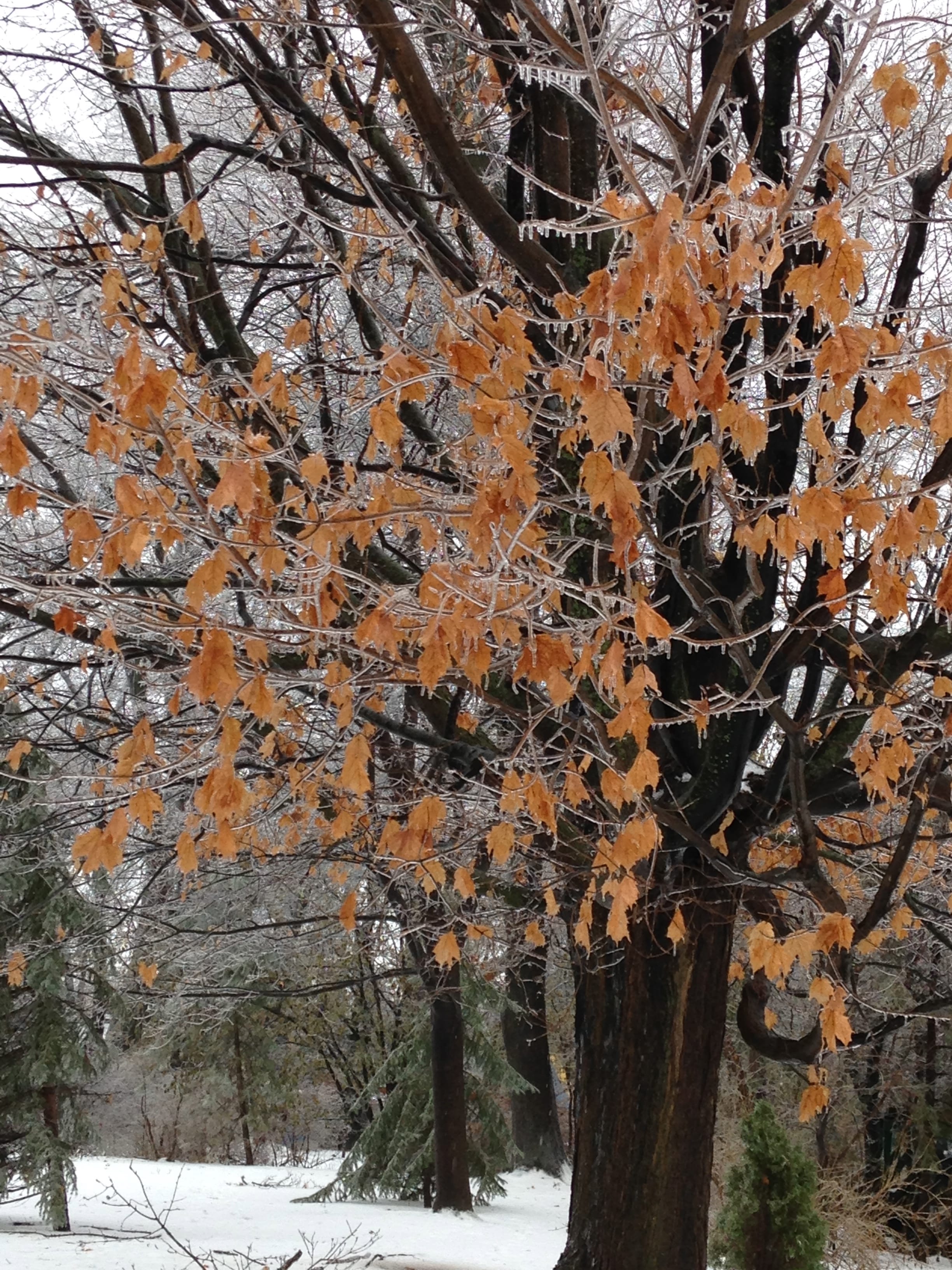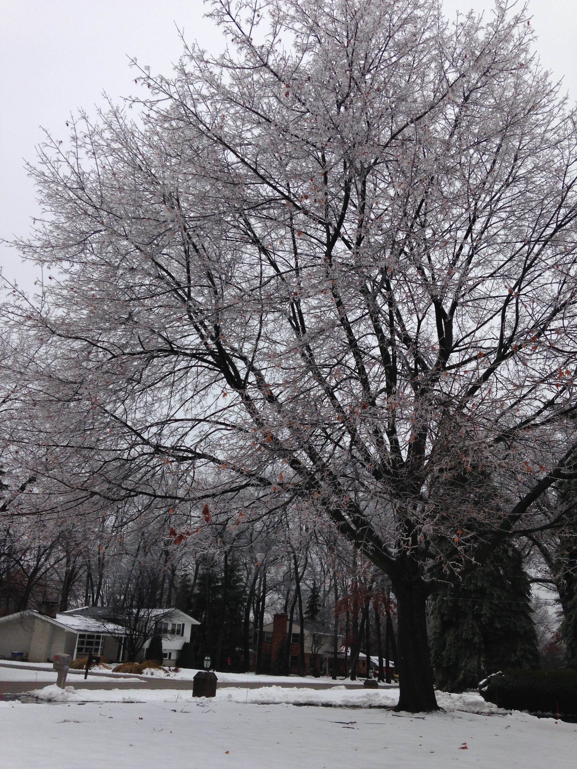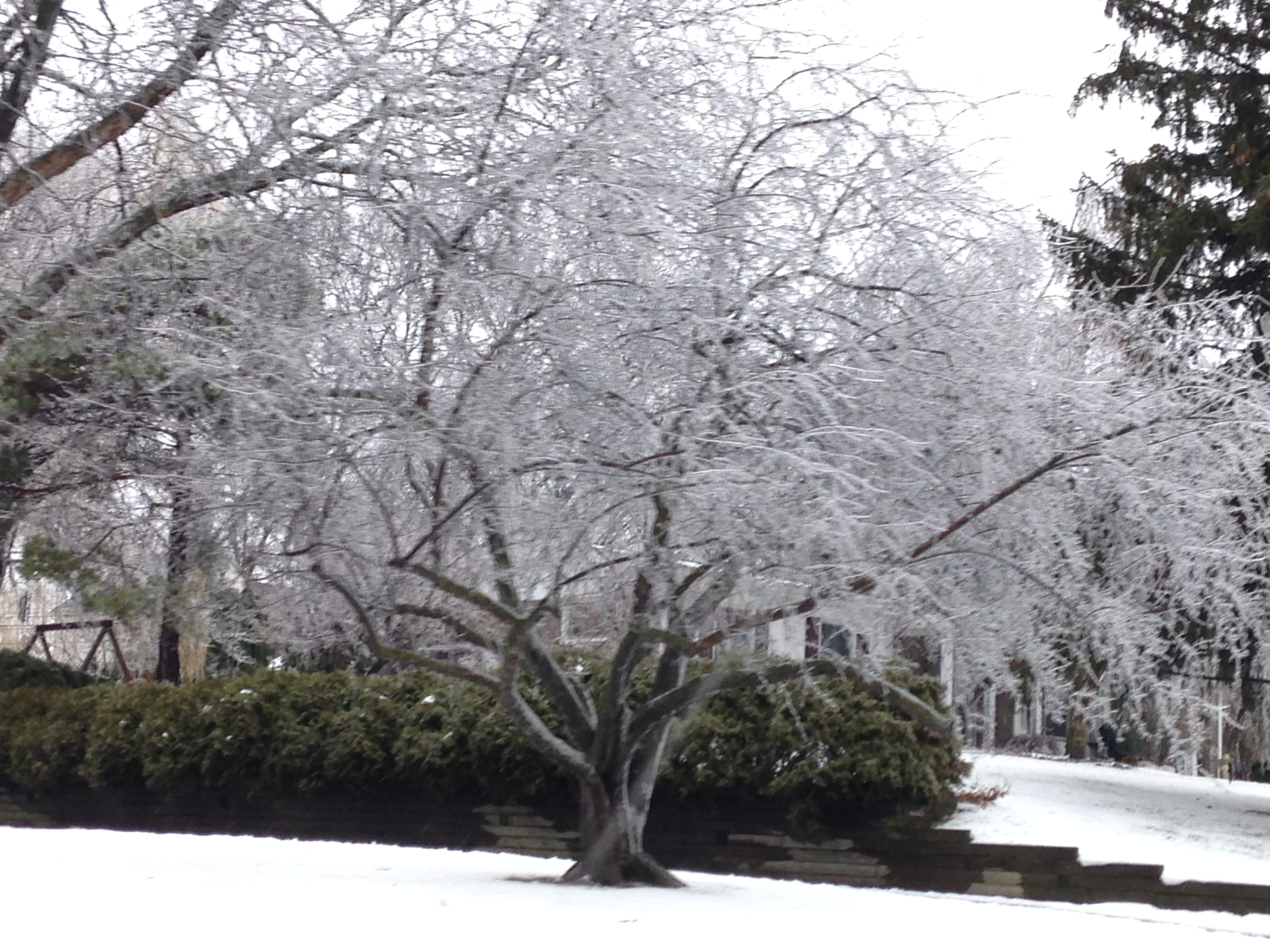 My boyfriend and I went on a tour around Rochester Hills, Michigan to snap photos of the different trees in the suburbs. Snow has been coming down hard the past few days in Michigan. The “warmer” weather made an interesting effect on the trees as the snow began to melt which turned the trees into living icicles.