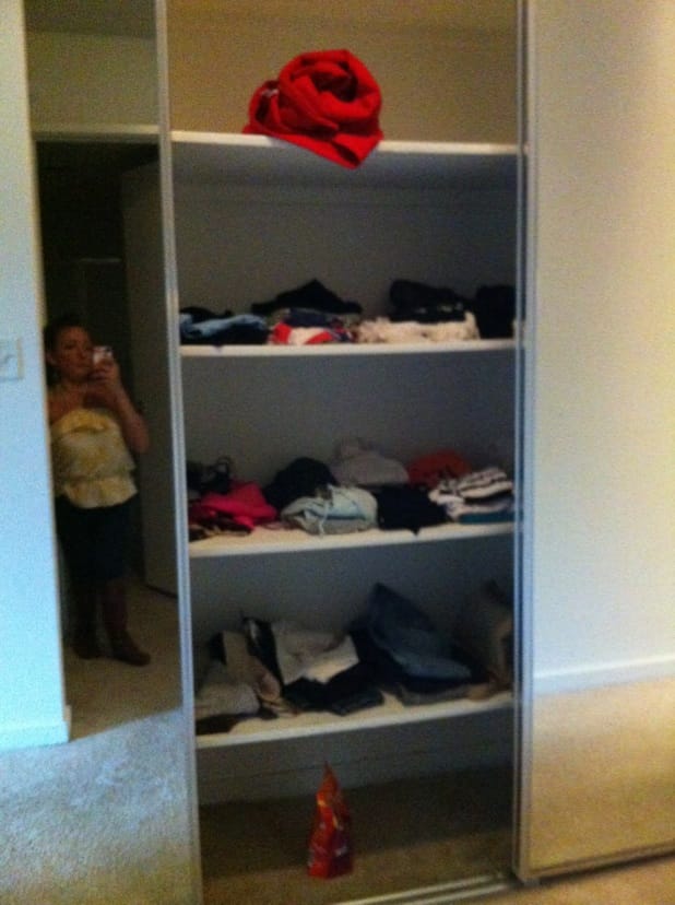 Giant Mirrors on my Closet — Two Sliding Doors — stuffed with my clothes already..