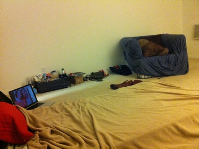 My Apartment It took a lot of time cleaning up after the last roommate & I mean hours. I shoved two garbage bags worth of her leftover things in the trashcan. Check out the mess she left on the balcony.