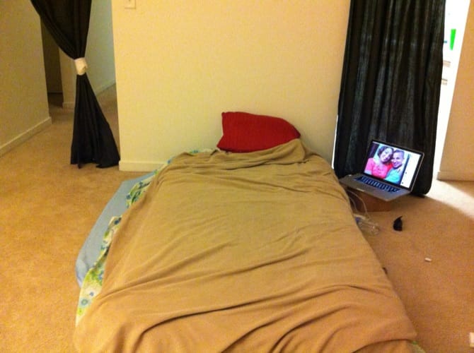 Make-shift closet. Shout/Out to the College of Engineering Technology at Ferris State University – if it wasn’t for my program, I wouldn’t have the skill set to make this closet with objects laying around the apartment. I put together this addition for my clothes with the help of engineering skills.