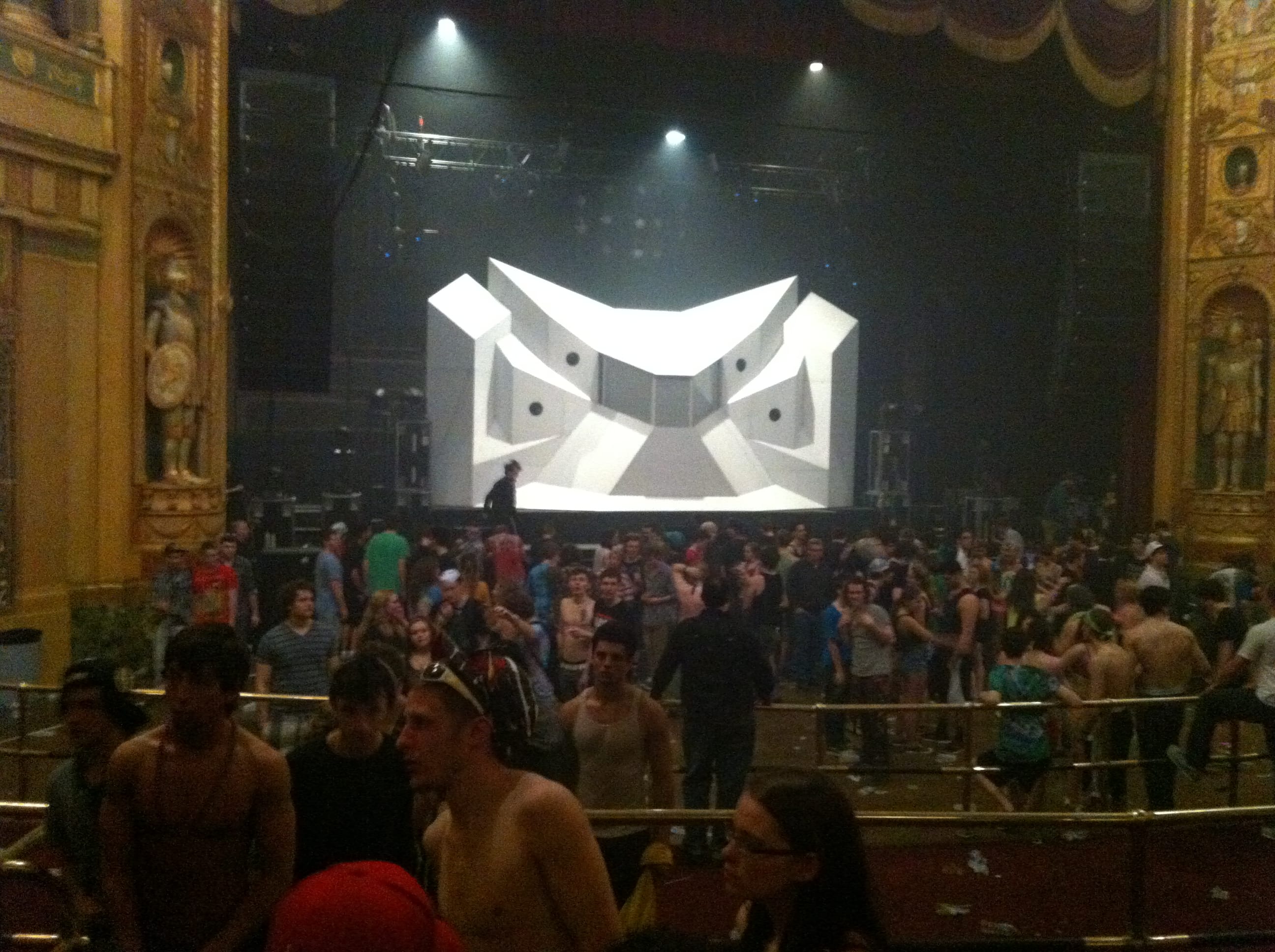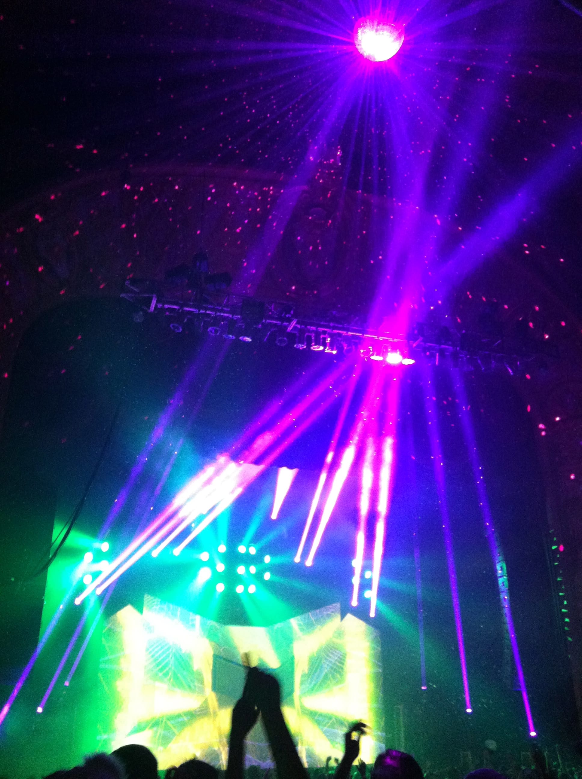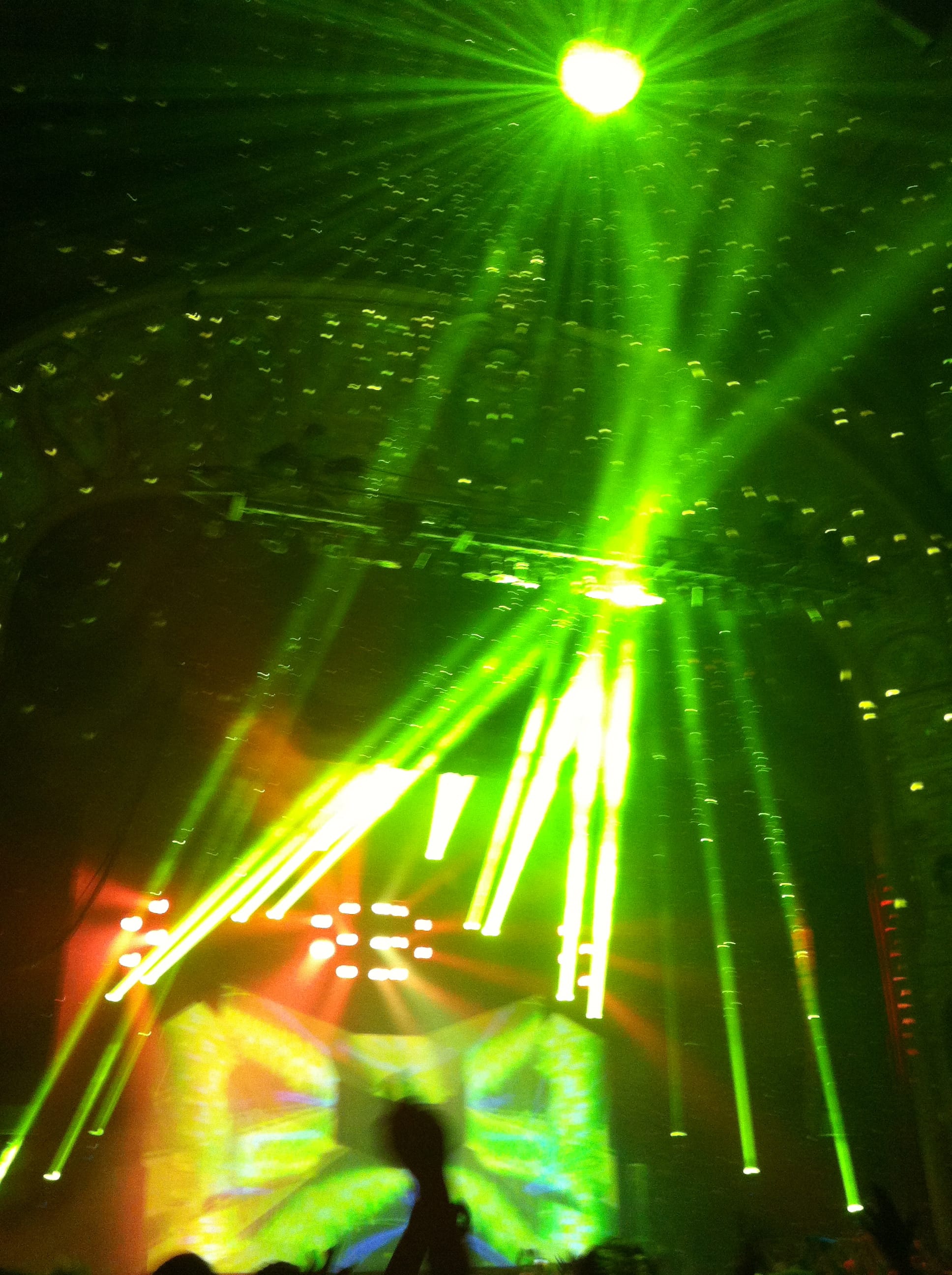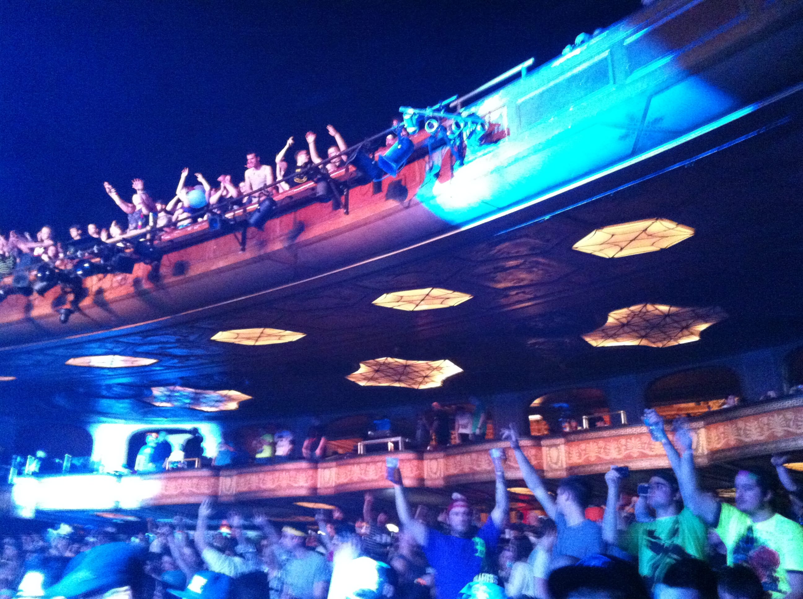 Light show was off the hook! 100,000 watts of sound, I had my ear plugs on deck! The balcony was shaking, ceiling falling on my shoulders, I was in the zone! I took my hand and scraped across the balcony railing, all white dust from the ceiling. I was scared for a minute, I’ll be honest. The balcony was bouncing to the bass. Everytime I leaned against the seat cushion, my butt vibrated and bounced to the beat.