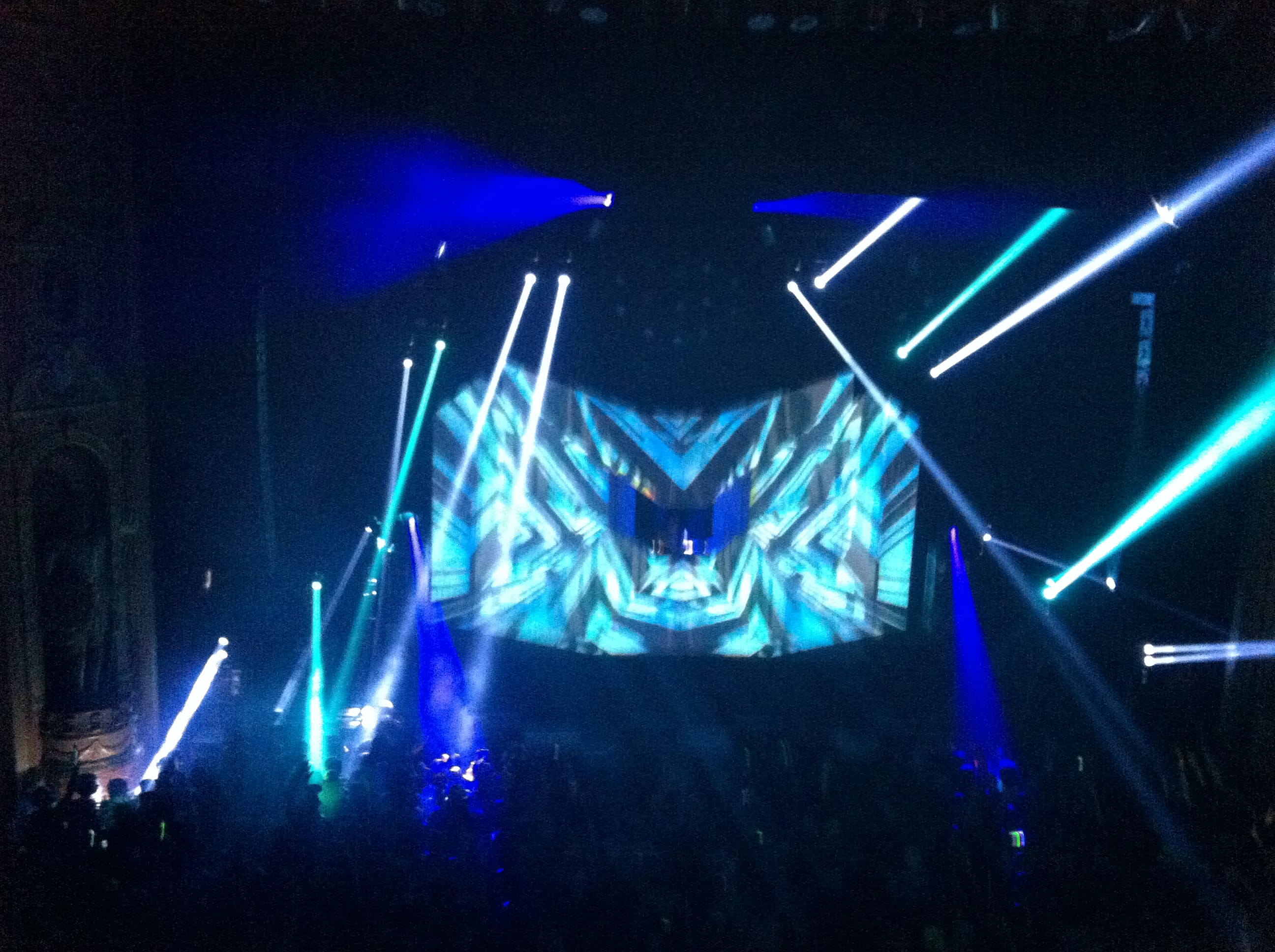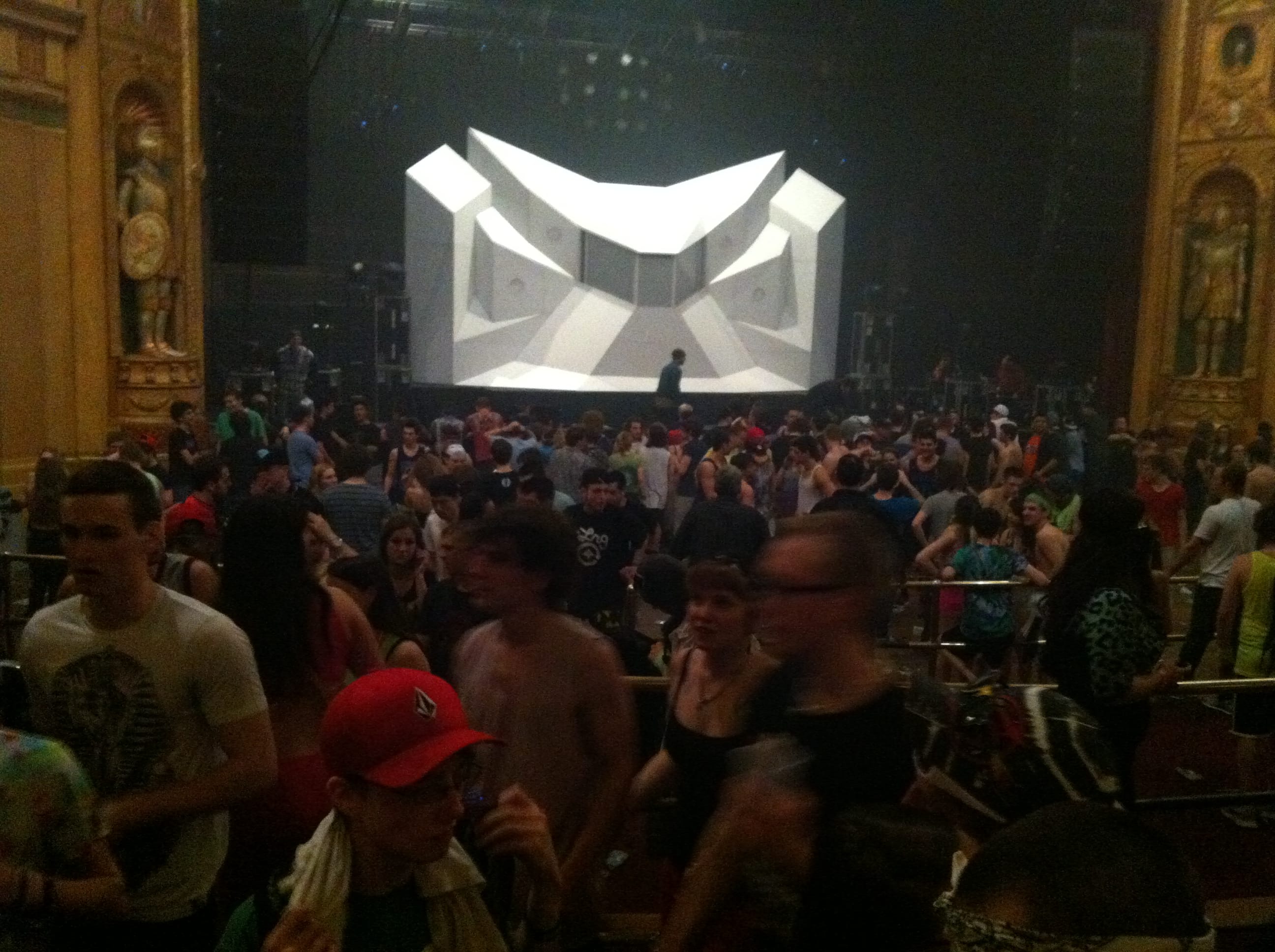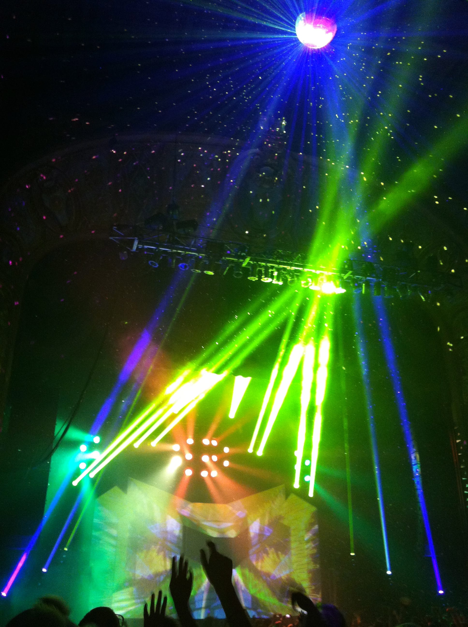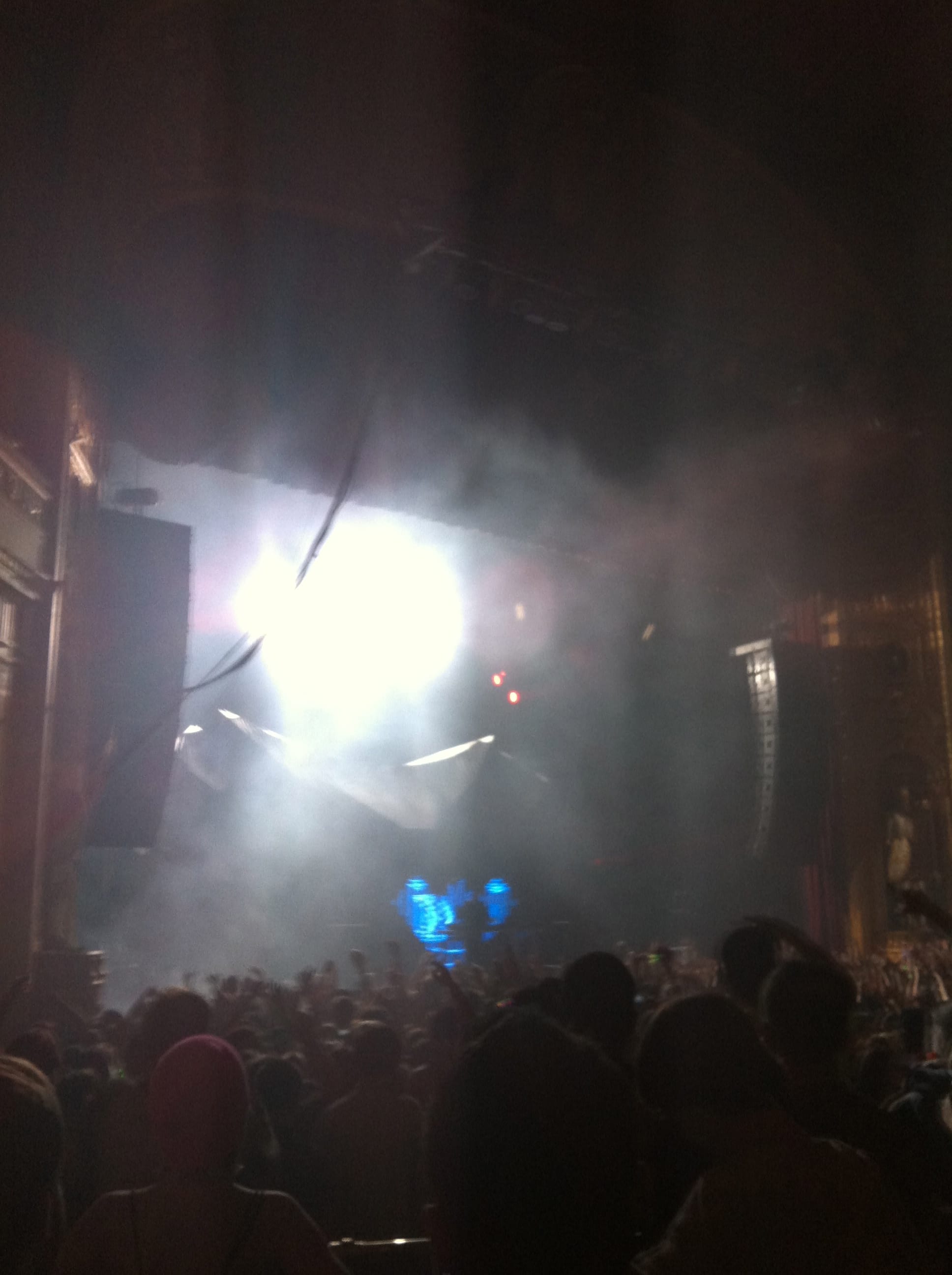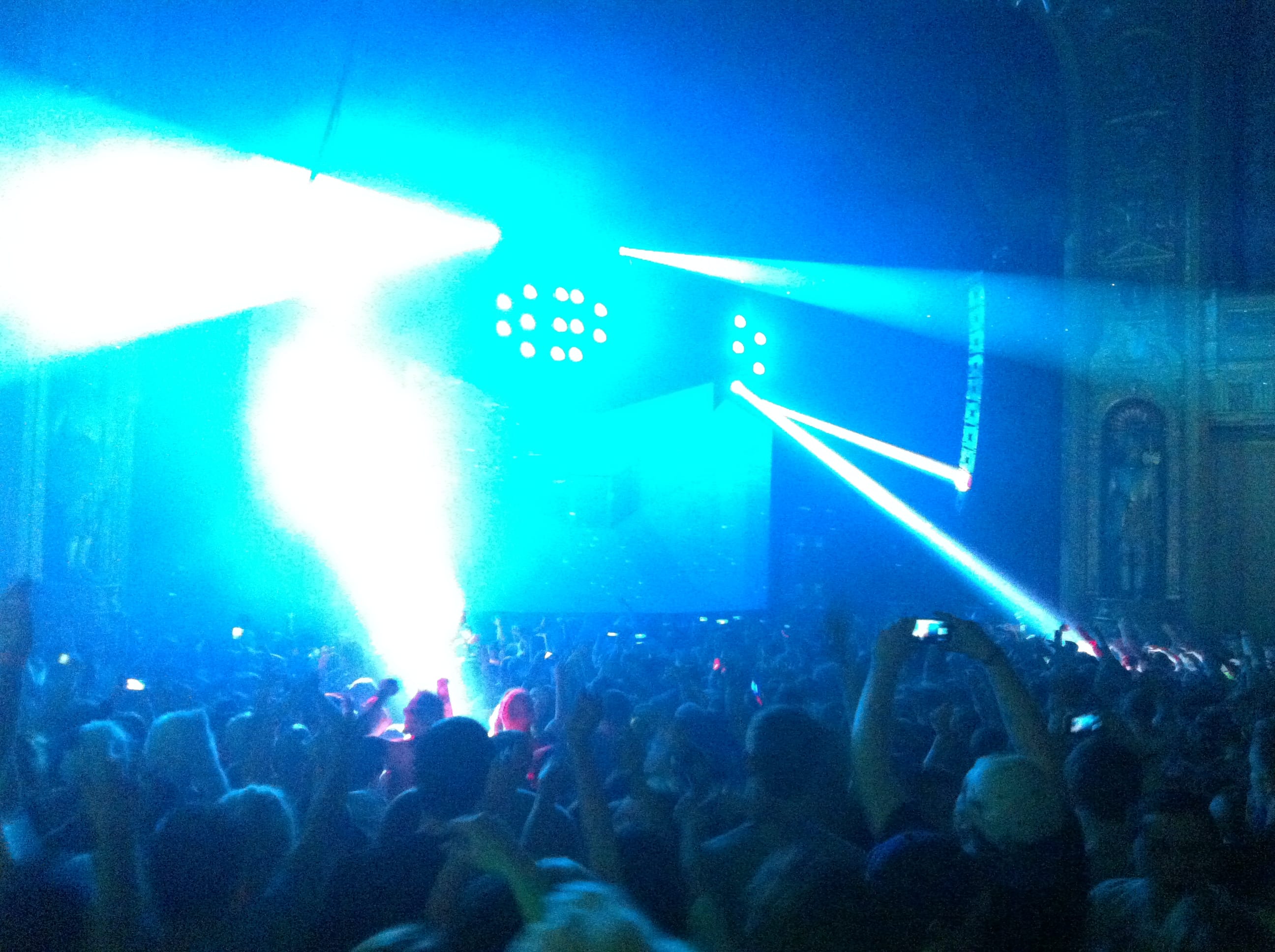 Light show was off the hook! 100,000 watts of sound, I had my ear plugs on deck! The balcony was shaking, ceiling falling on my shoulders, I was in the zone! I took my hand and scraped across the balcony railing, all white dust from the ceiling. I was scared for a minute, I’ll be honest. The balcony was bouncing to the bass. Everytime I leaned against the seat cushion, my butt vibrated and bounced to the beat.