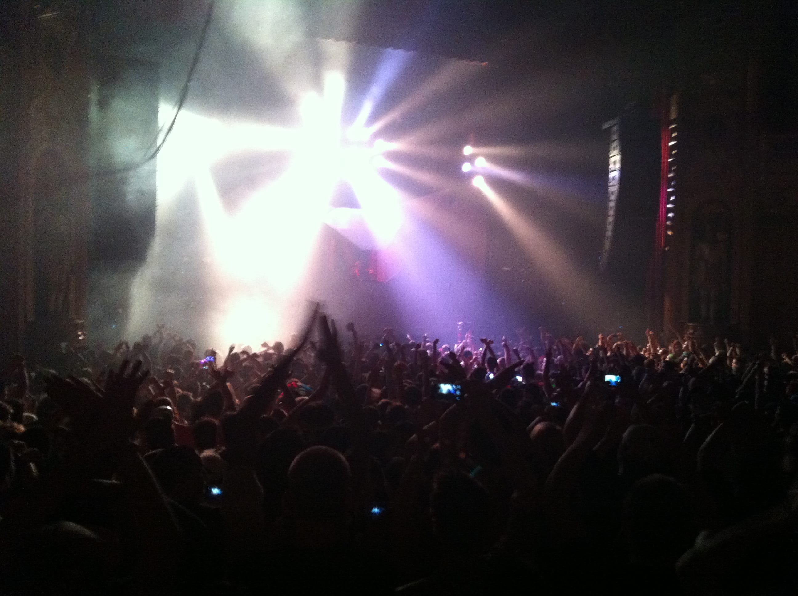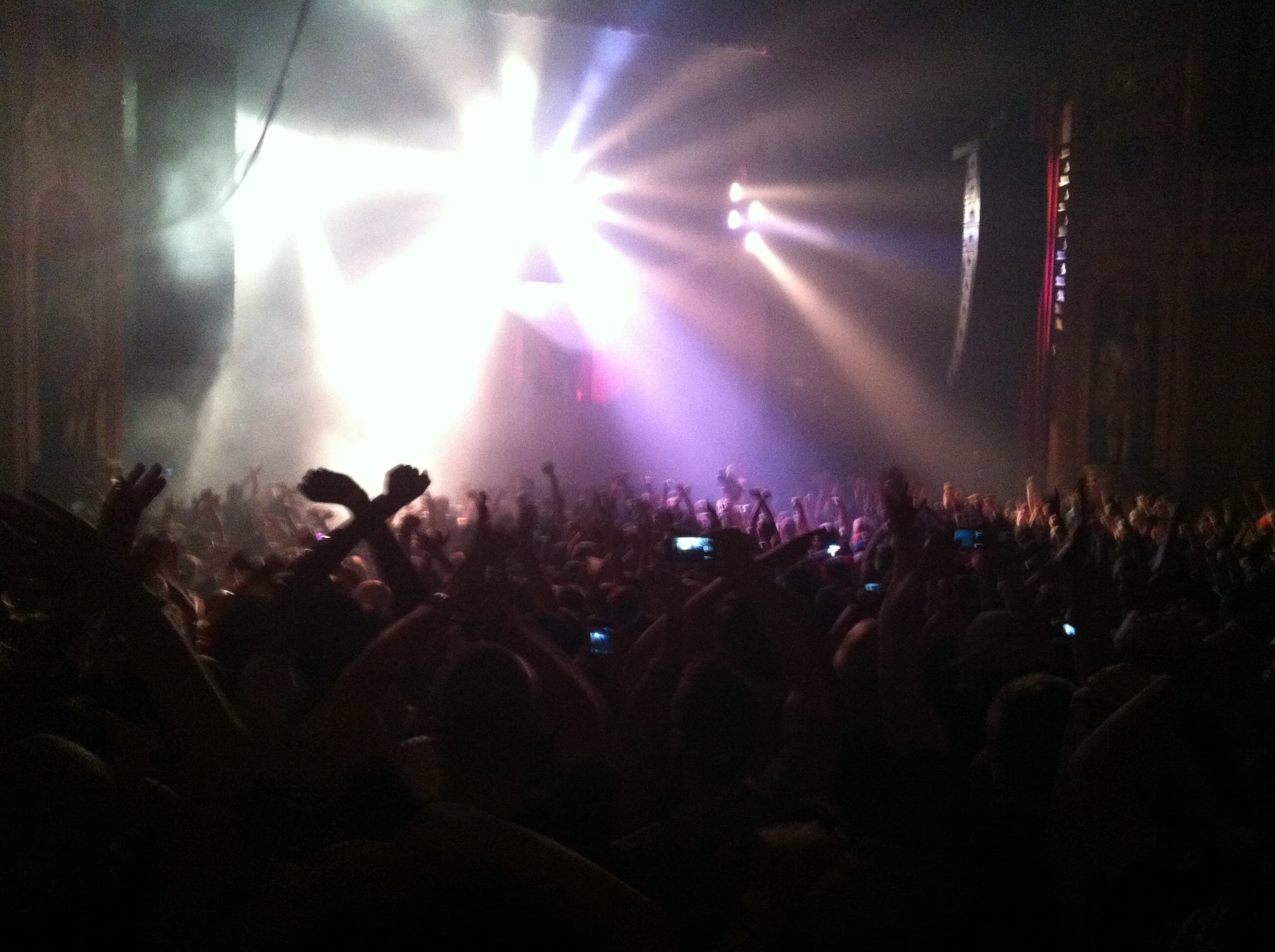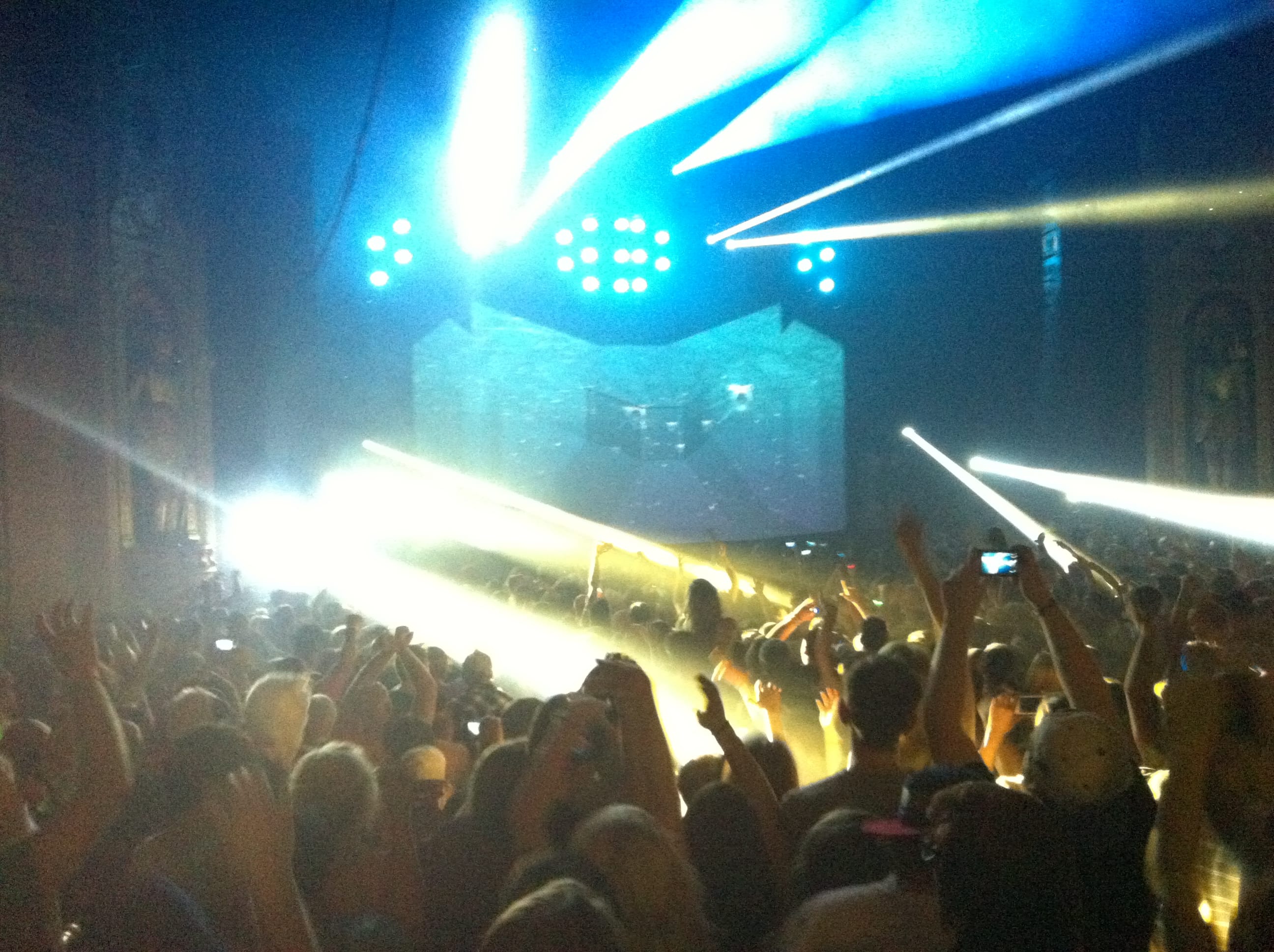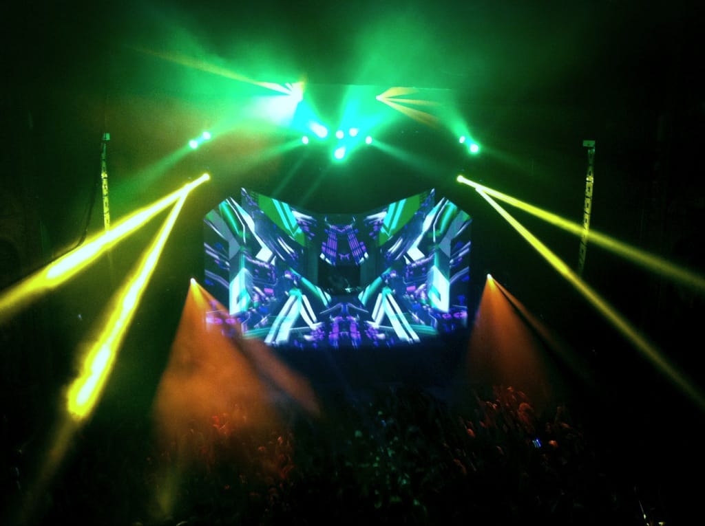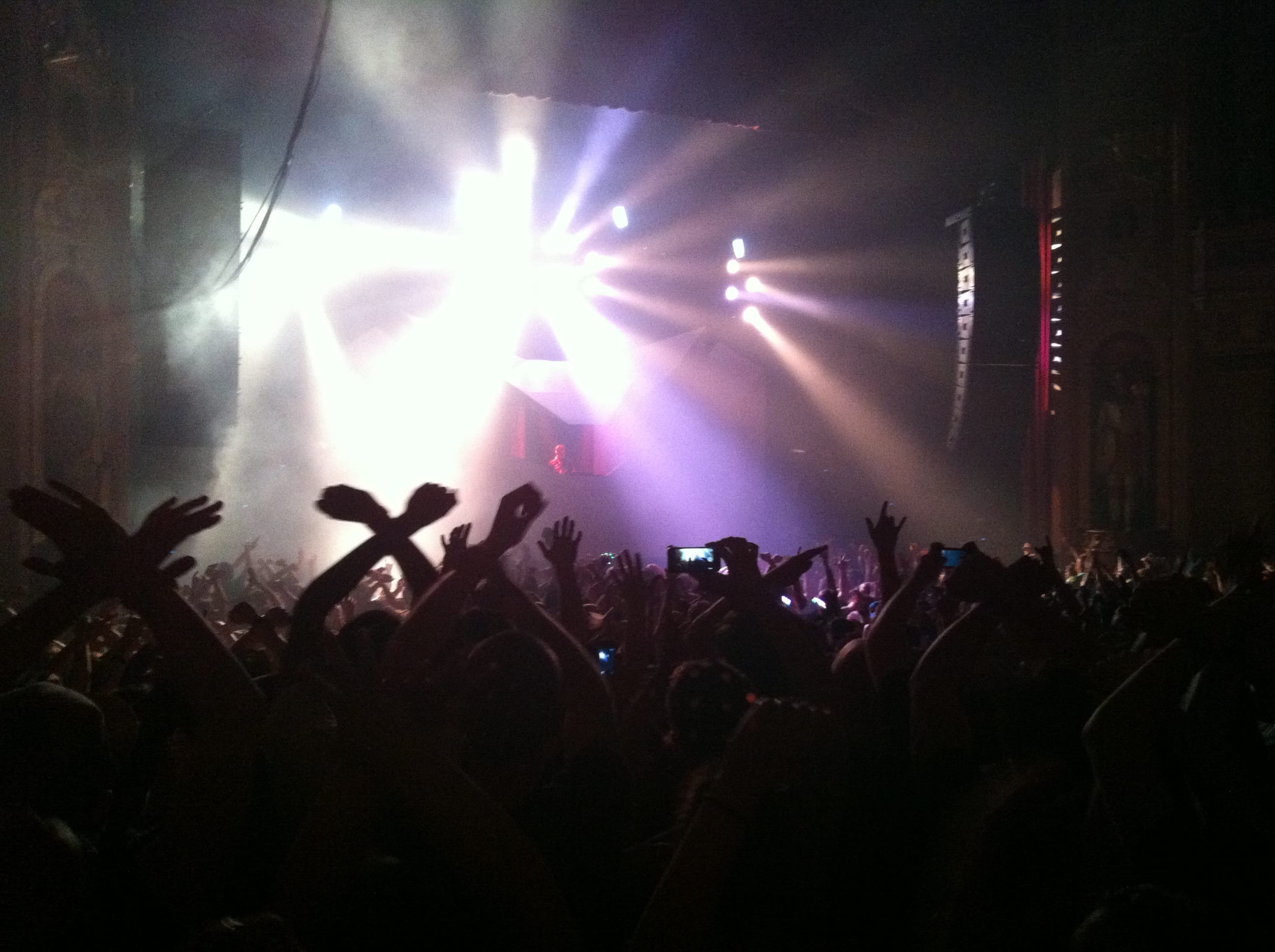 Light show was off the hook! 100,000 watts of sound, I had my ear plugs on deck! The balcony was shaking, ceiling falling on my shoulders, I was in the zone! I took my hand and scraped across the balcony railing, all white dust from the ceiling. I was scared for a minute, I’ll be honest. The balcony was bouncing to the bass. Everytime I leaned against the seat cushion, my butt vibrated and bounced to the beat.
