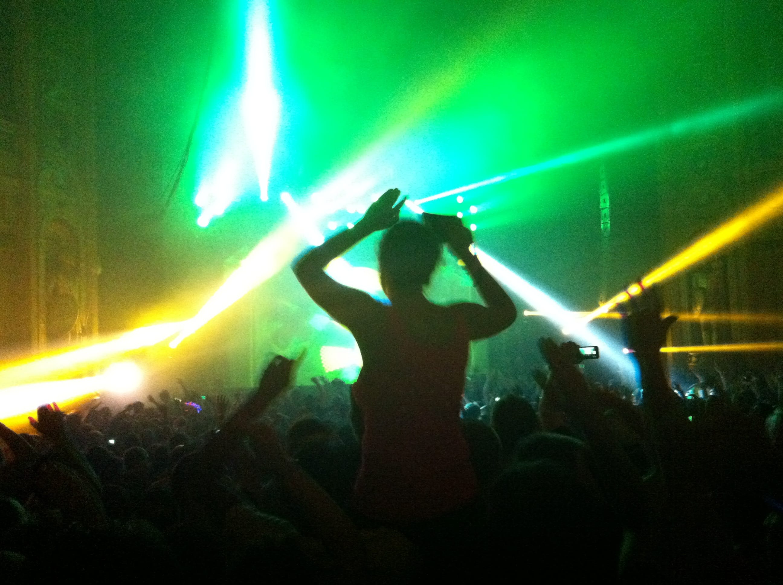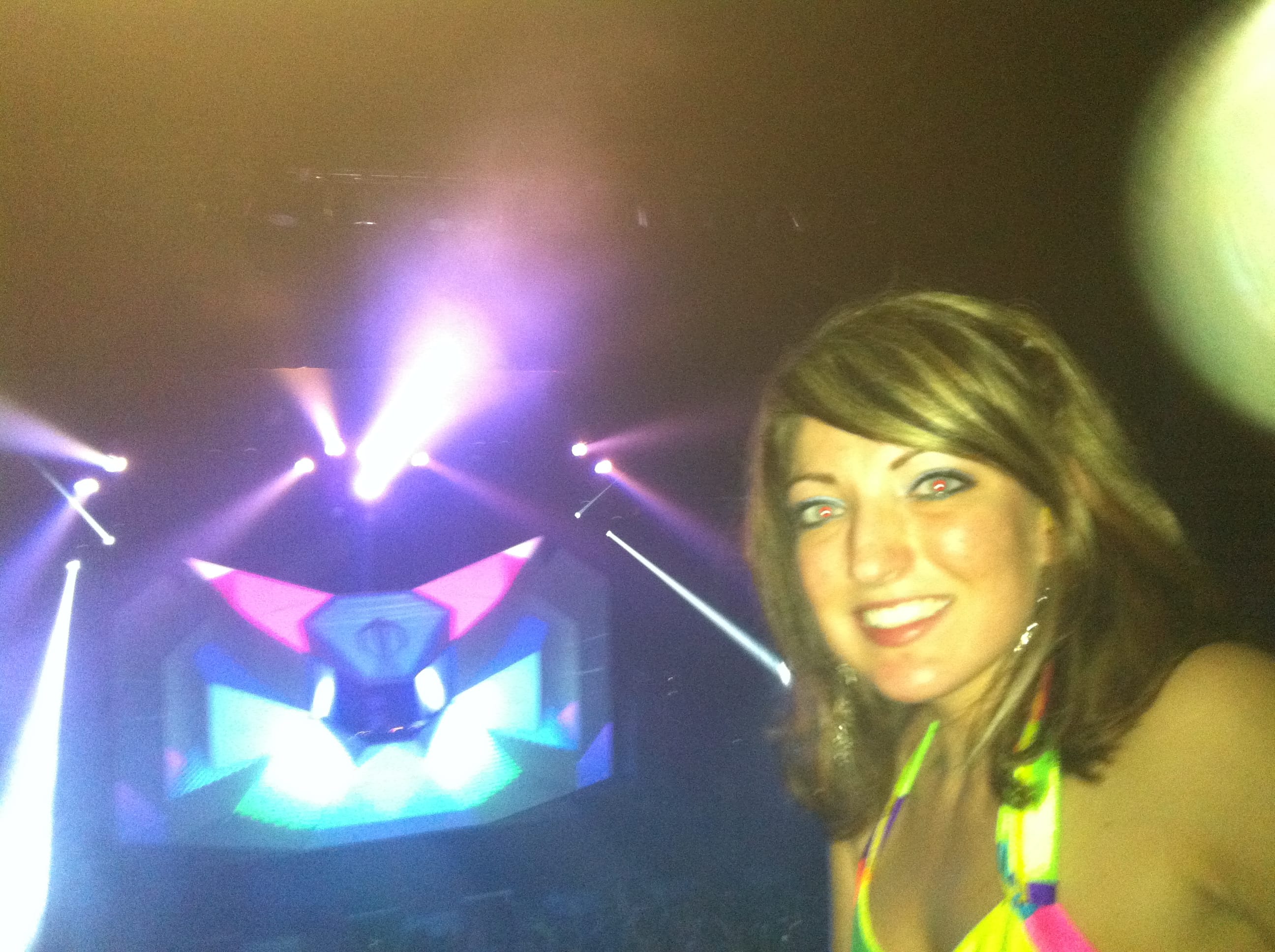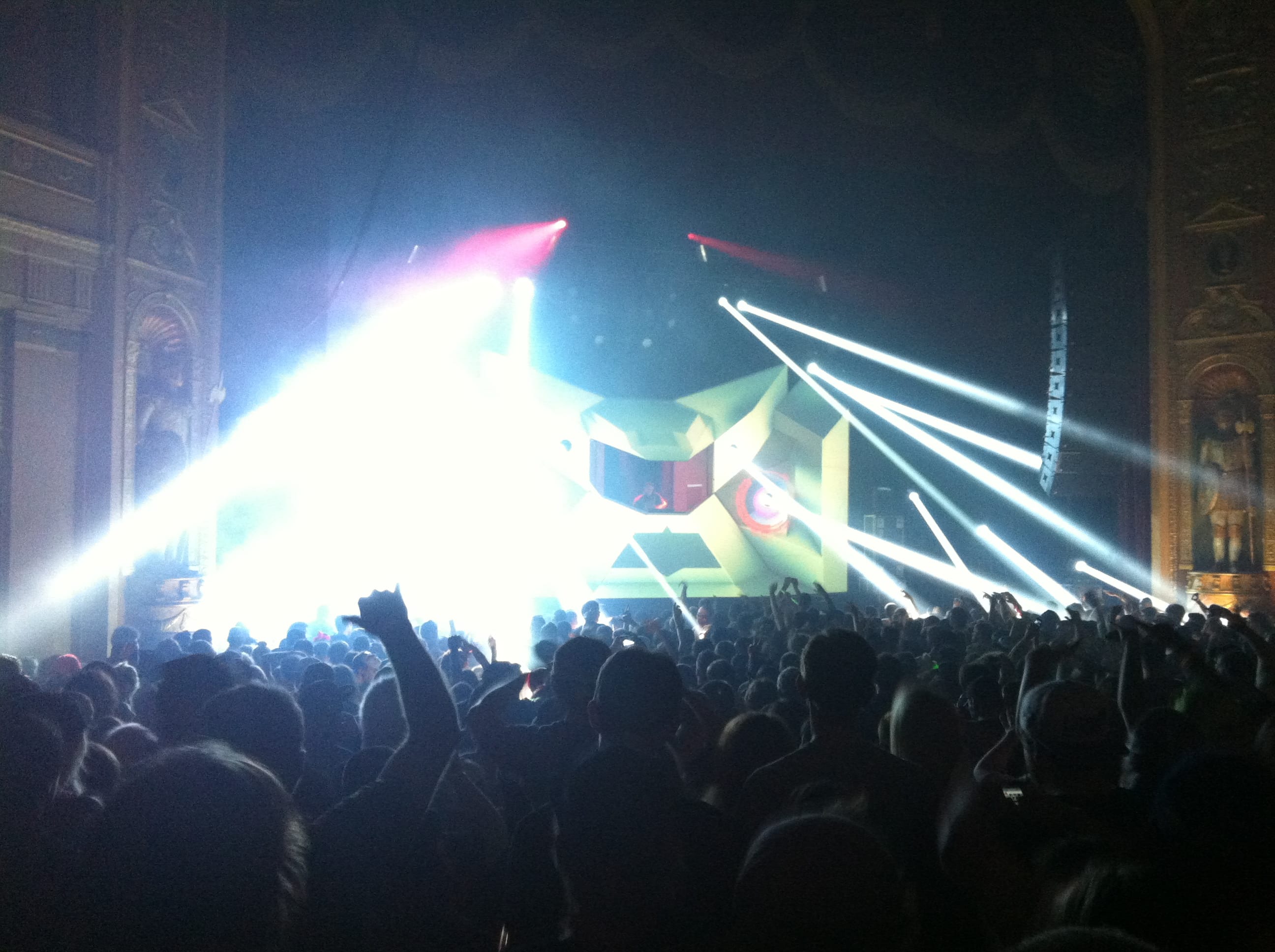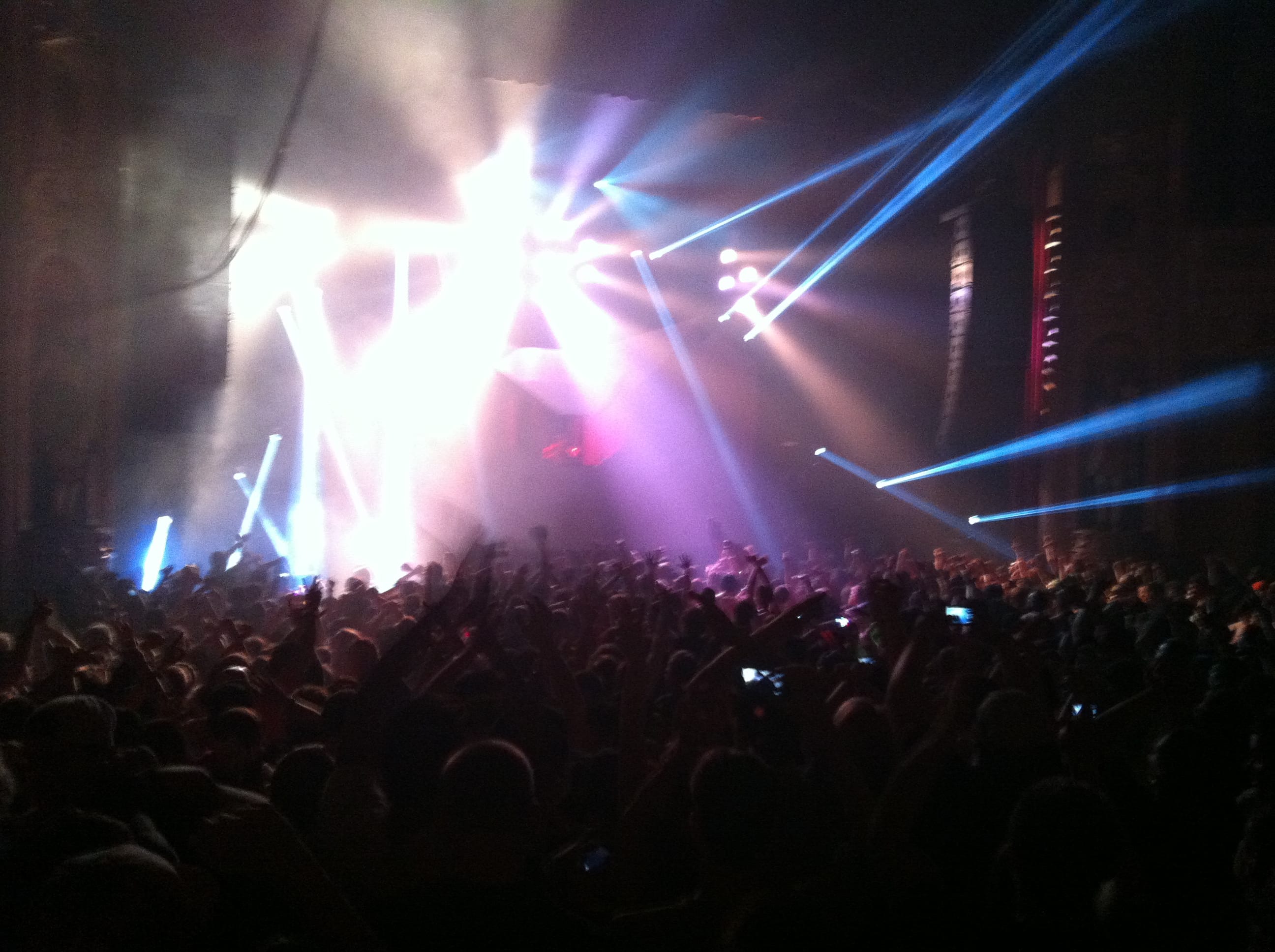 Light show was off the hook! 100,000 watts of sound, I had my ear plugs on deck! The balcony was shaking, ceiling falling on my shoulders, I was in the zone! I took my hand and scraped across the balcony railing, all white dust from the ceiling. I was scared for a minute, I’ll be honest. The balcony was bouncing to the bass. Everytime I leaned against the seat cushion, my butt vibrated and bounced to the beat.