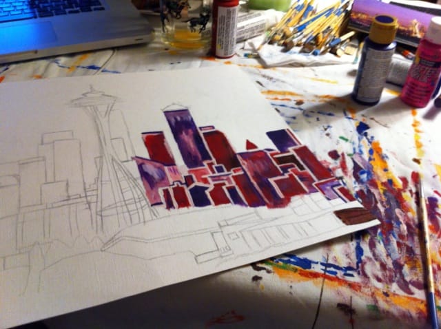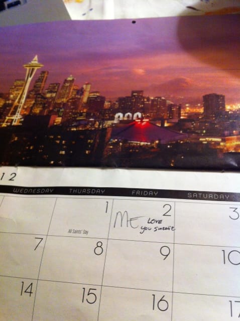 My inspiration! A calendar that was given as a gift. My boyfriend wrote ‘I love you sweetie’ on my birthday. My calendar was the perfect inspiration for the city of Seattle.